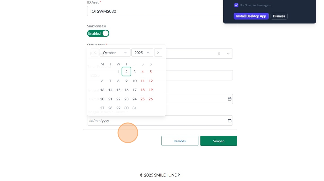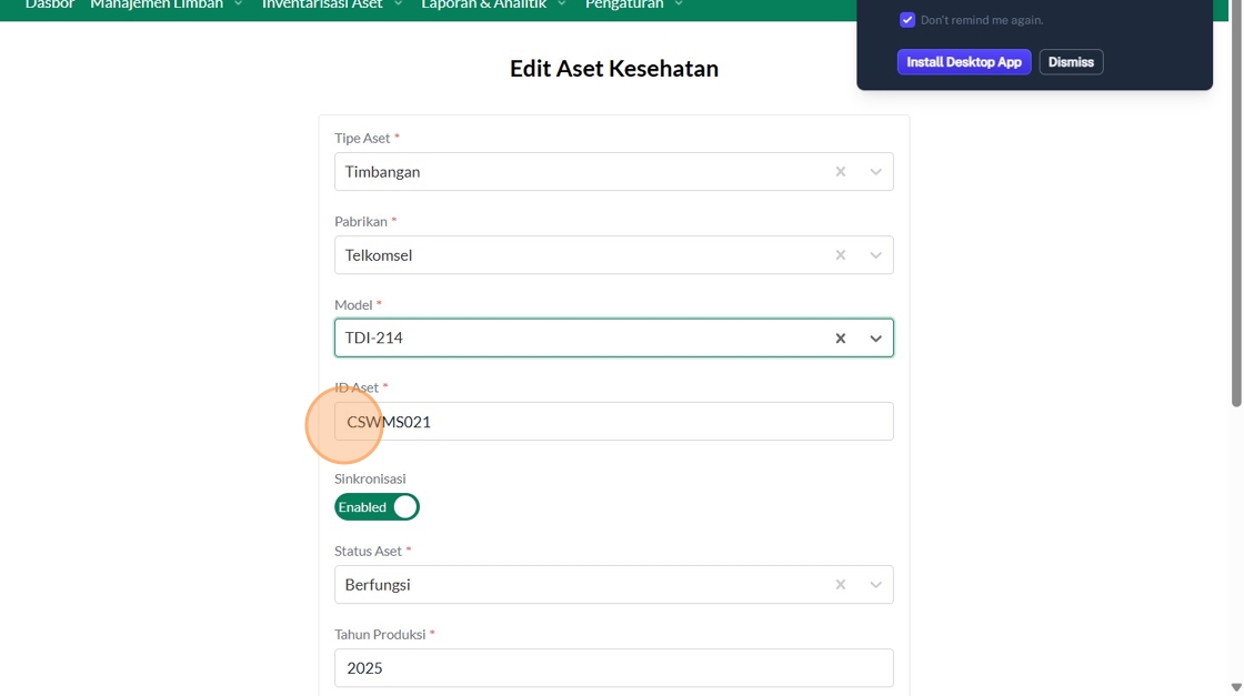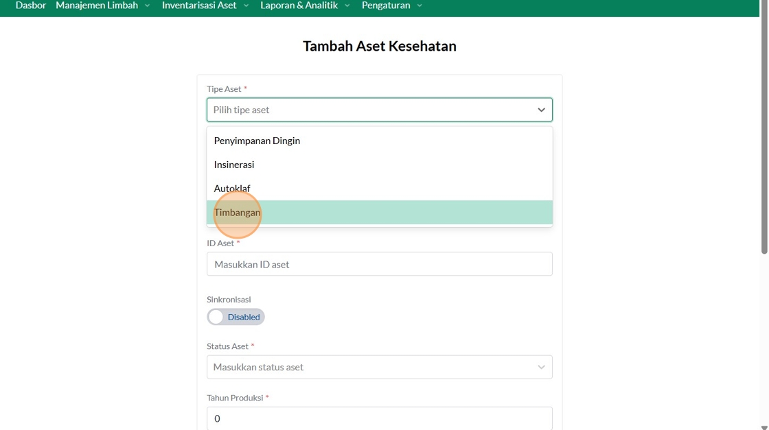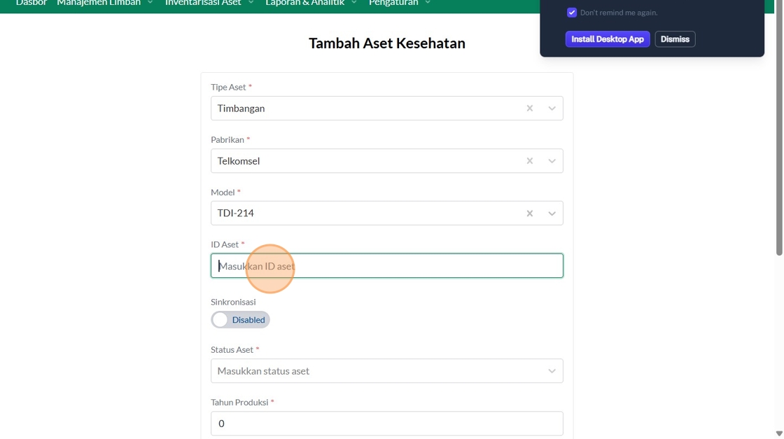 25. Click "Tambah Asset Kesehatan"