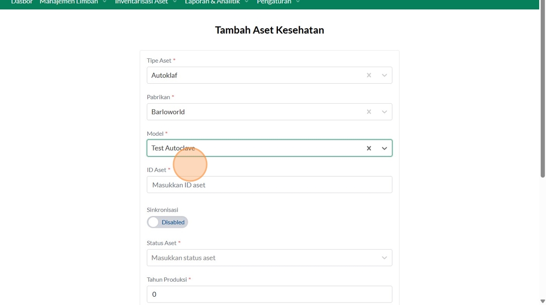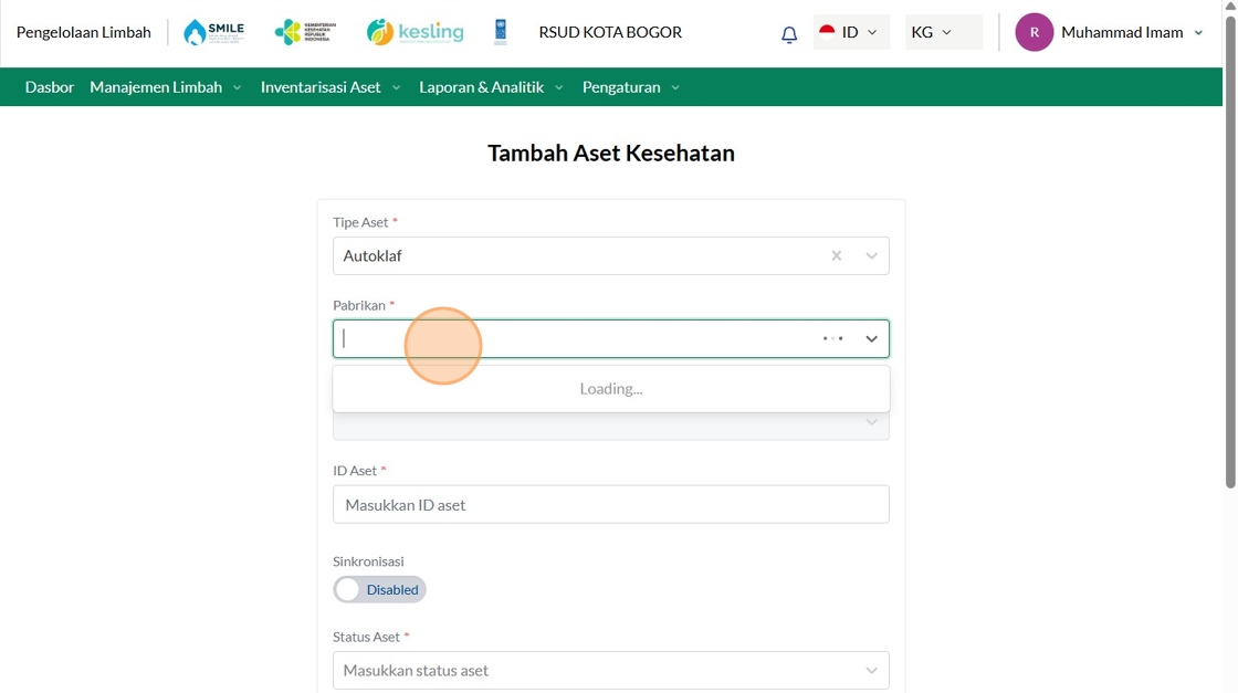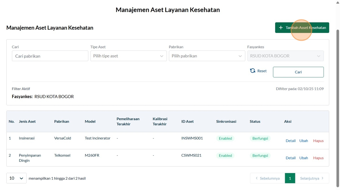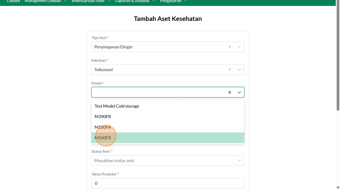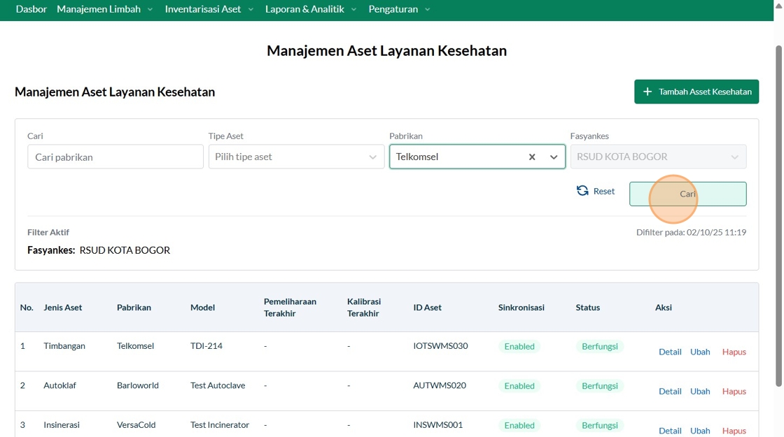 149. Click "Manajemen Aset Layanan KesehatanManajemen Aset Layanan KesehatanTambah Asset KesehatanCariTipe AsetPilih tipe asetPabrikanTelkomselFasyankesRSUD..."