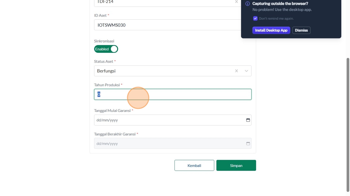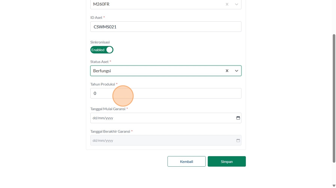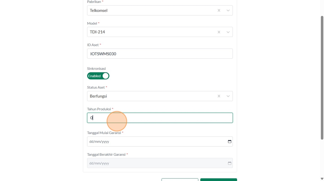 37. Double-click the "Masukkan Tahun Produksi (contoh : 2024)" field.