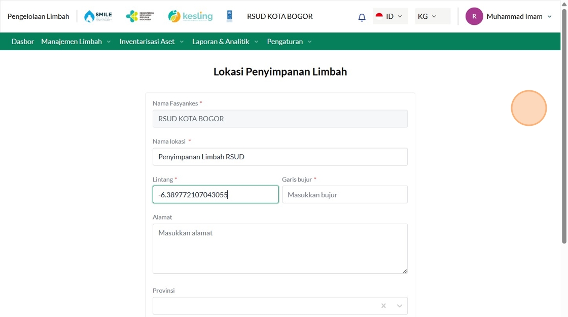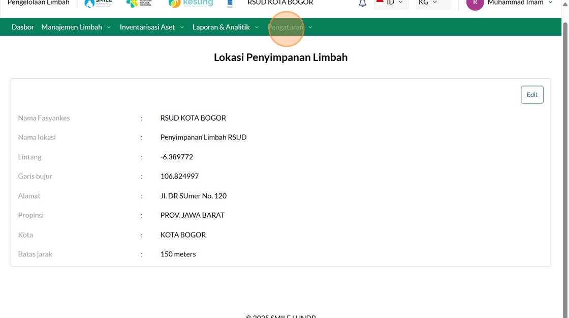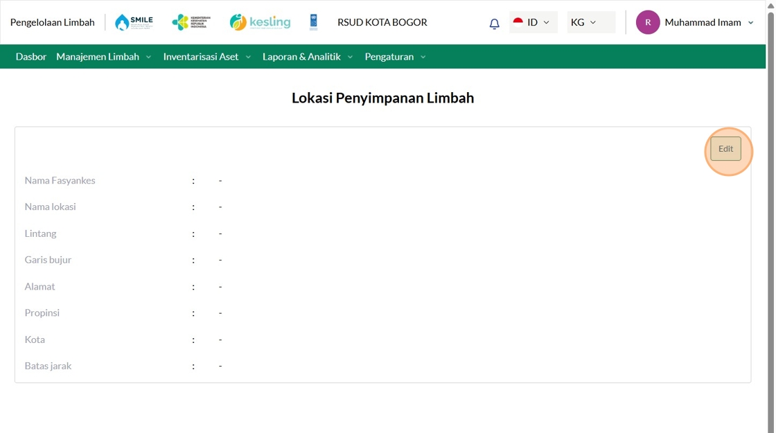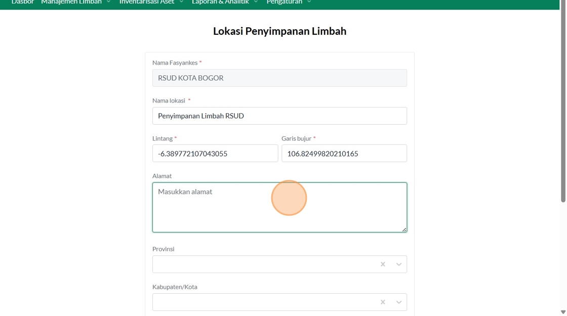 158. Click "Lokasi Penyimpanan Limbah"