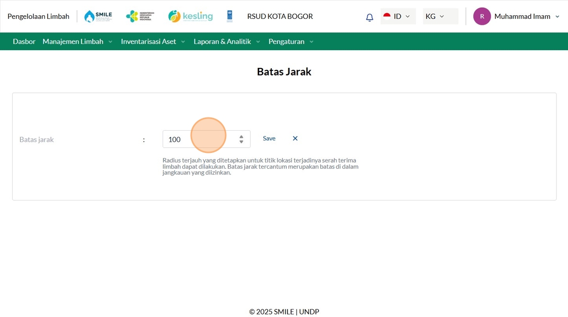 175. Click the "Masukkan batas jarak (dalam meter)" field.