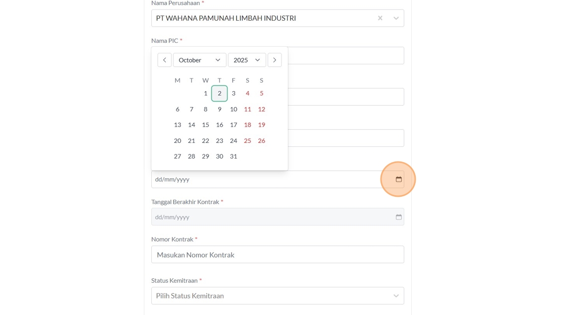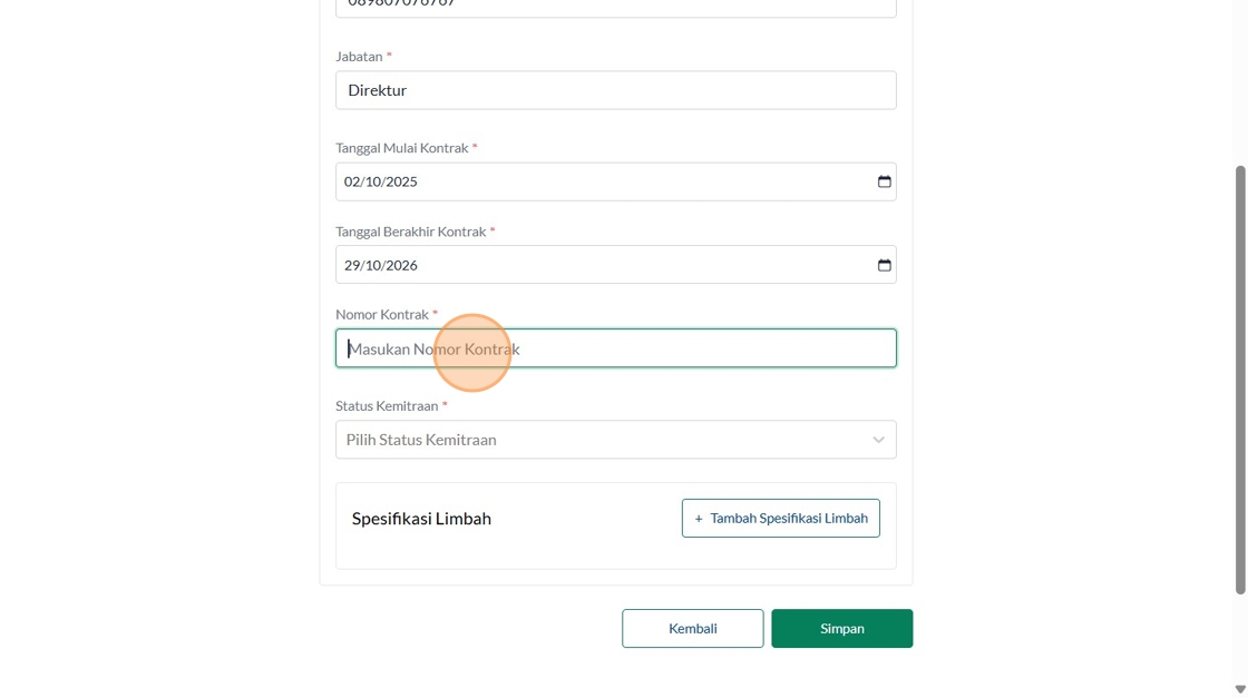 198. Click the "Masukan Nomor Kontrak" field.