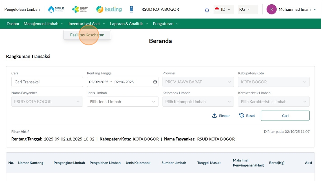 3. Click "Fasilitas Kesehatan"