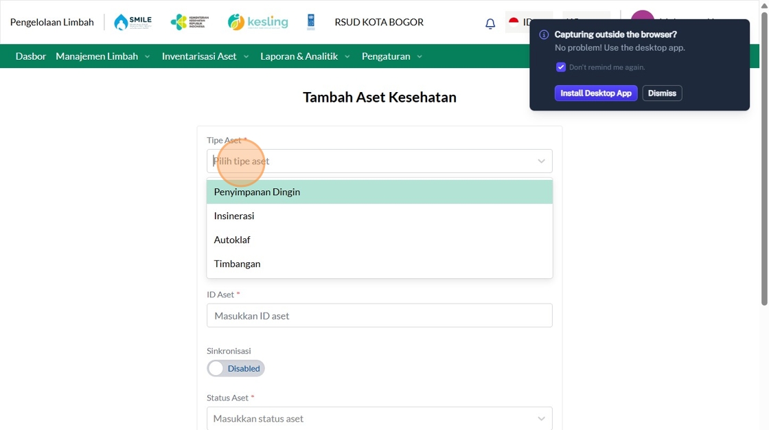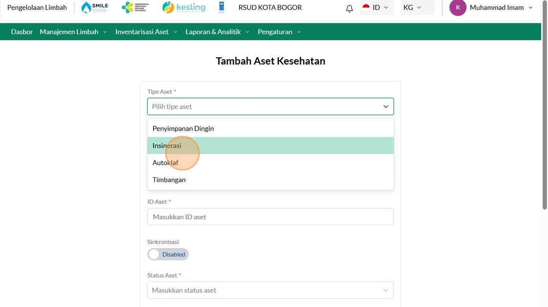 4. Click "Tambah Asset Kesehatan"
