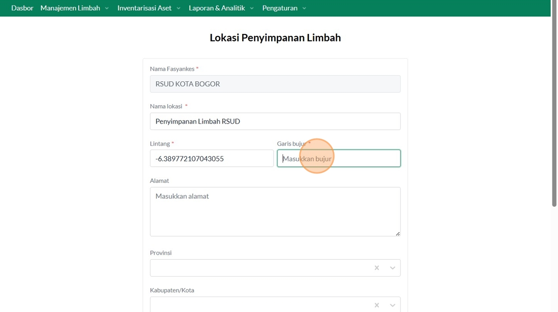 165. Click the "Masukkan bujur" field.