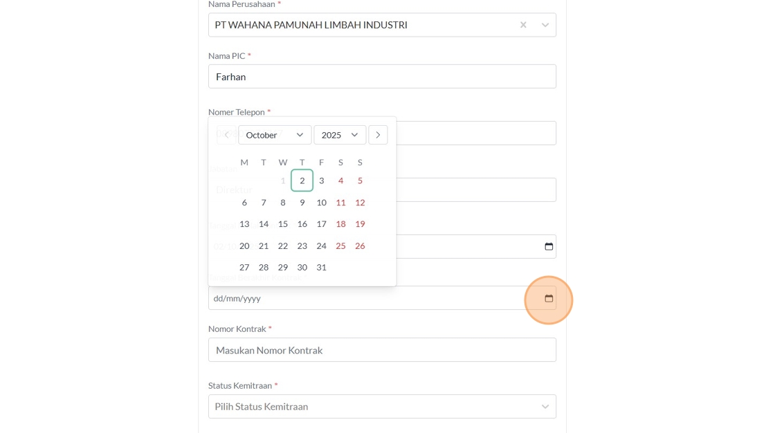 187. Click the "Masukan Nama PIC" field.