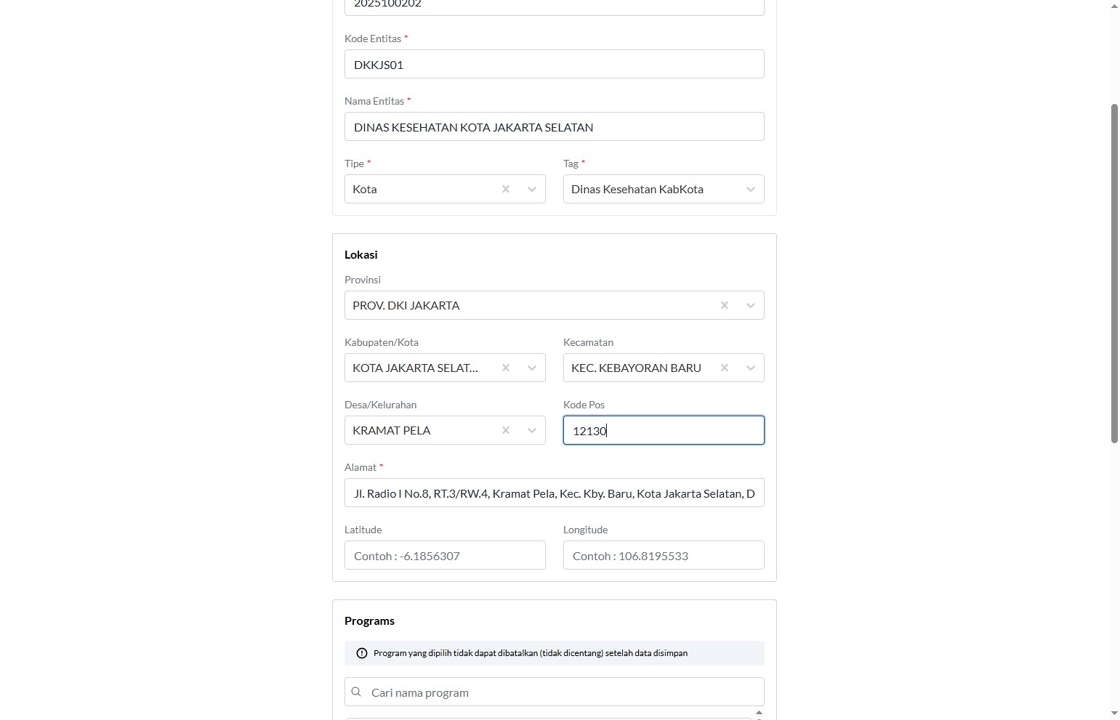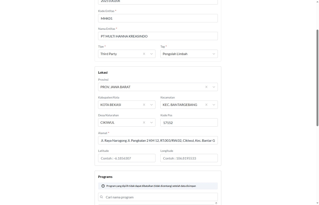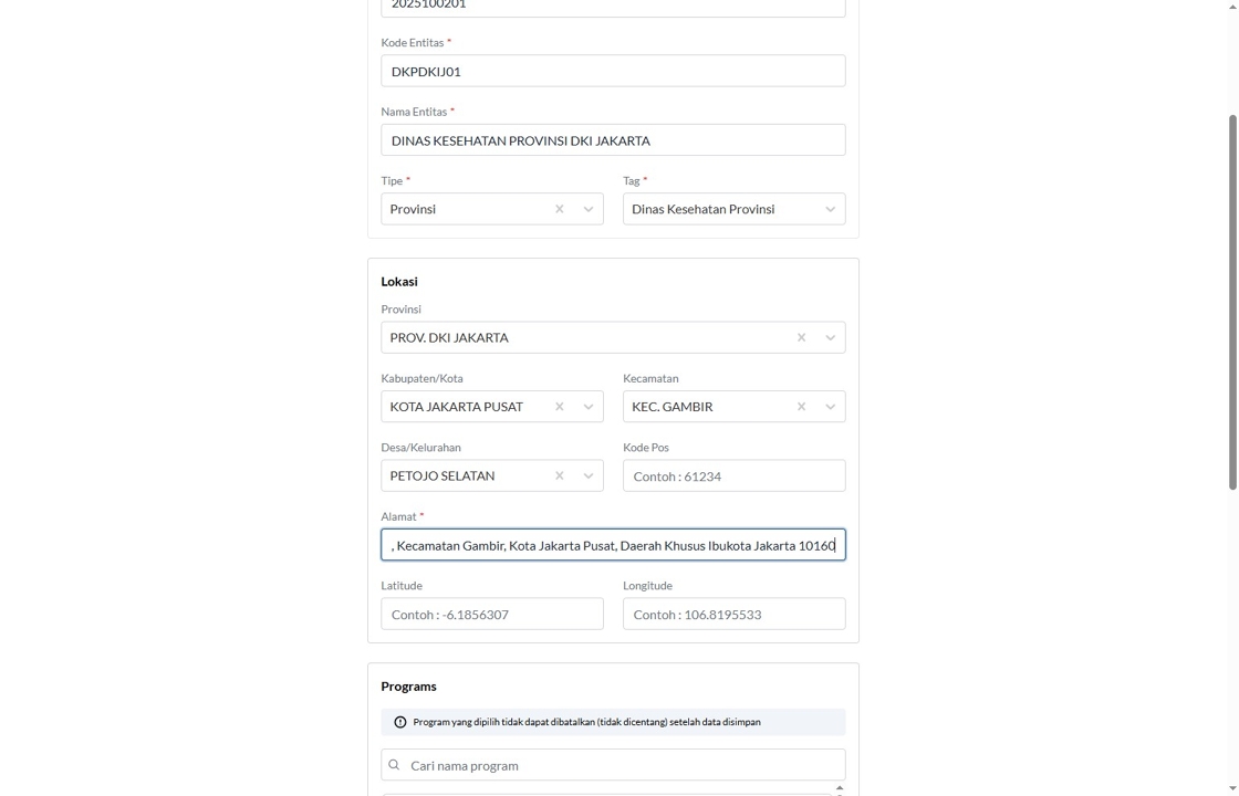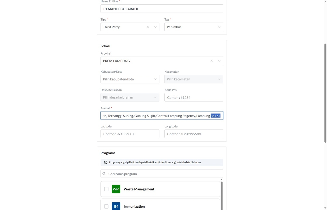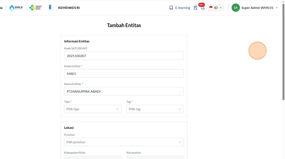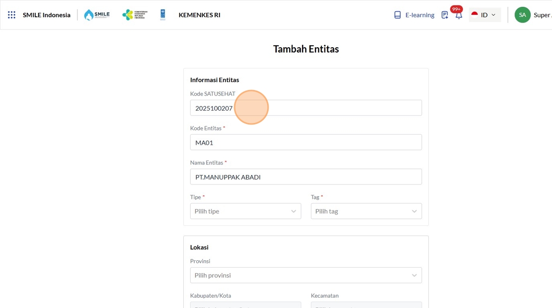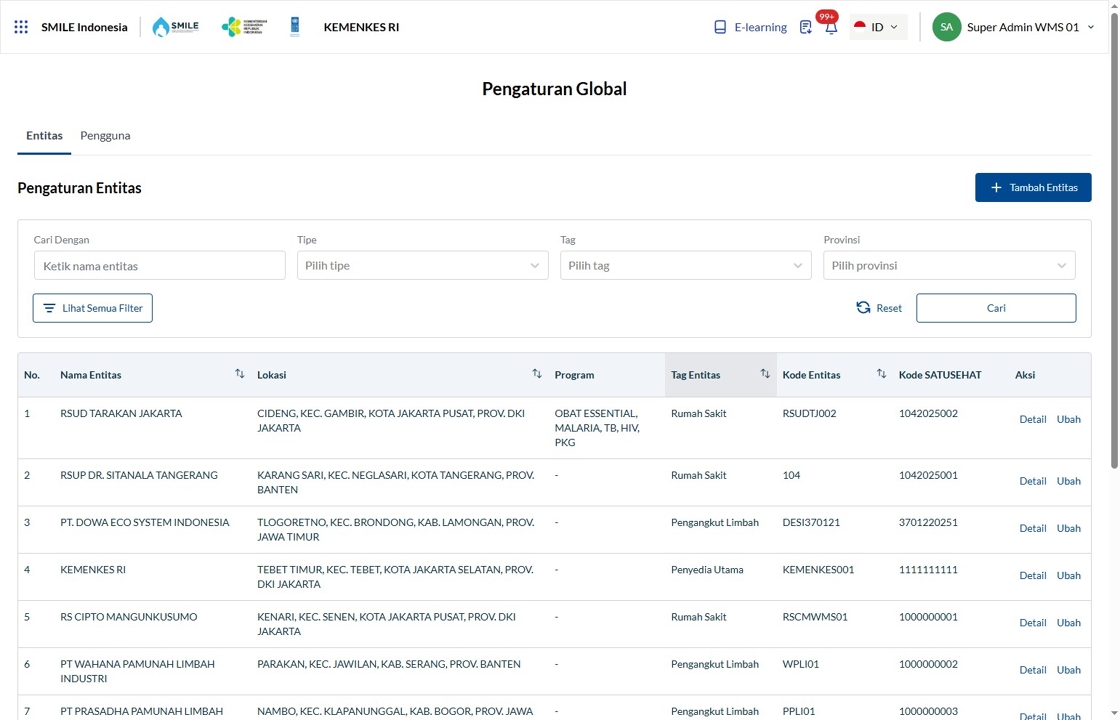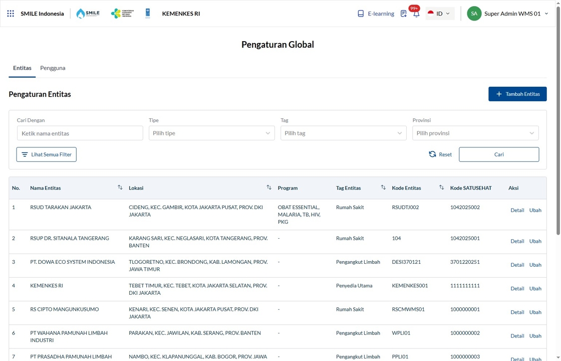 test Panduan - Menambah Entitas di Pengaturan Global SMILE