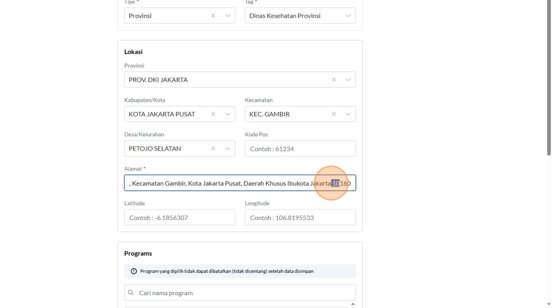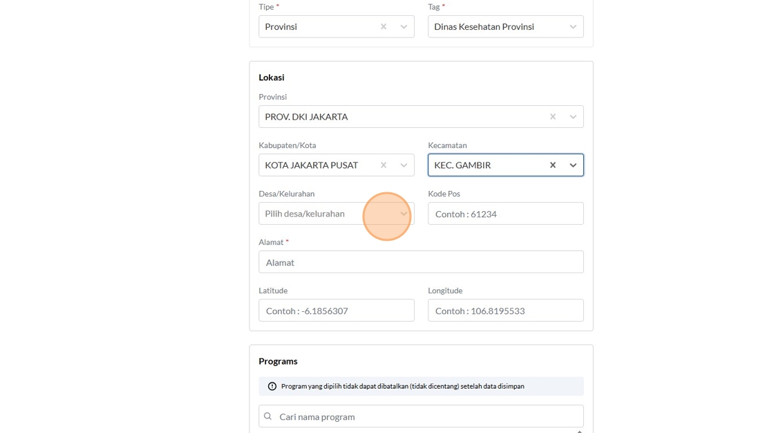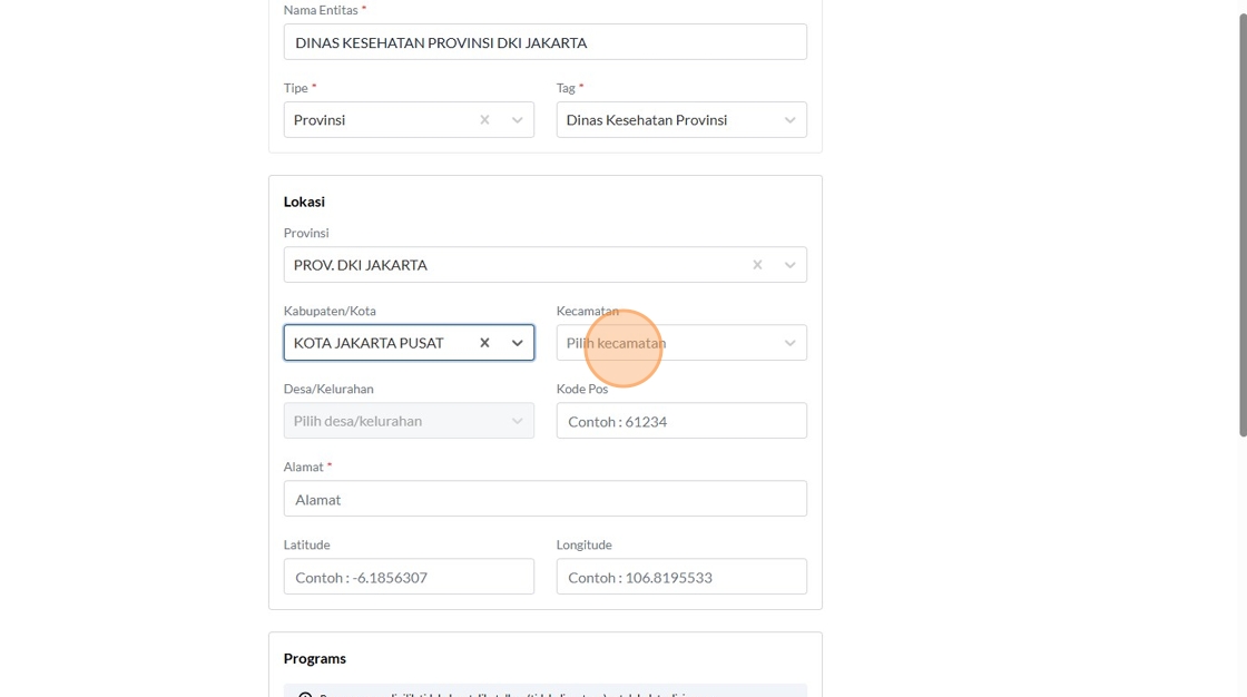 9. Click the "Contoh : Kemenkes RI" field.