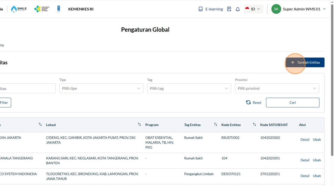 8. Click "Tambah Entitas"