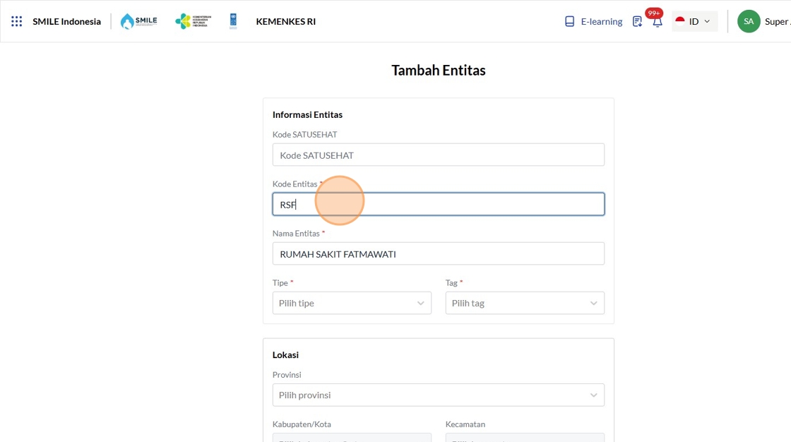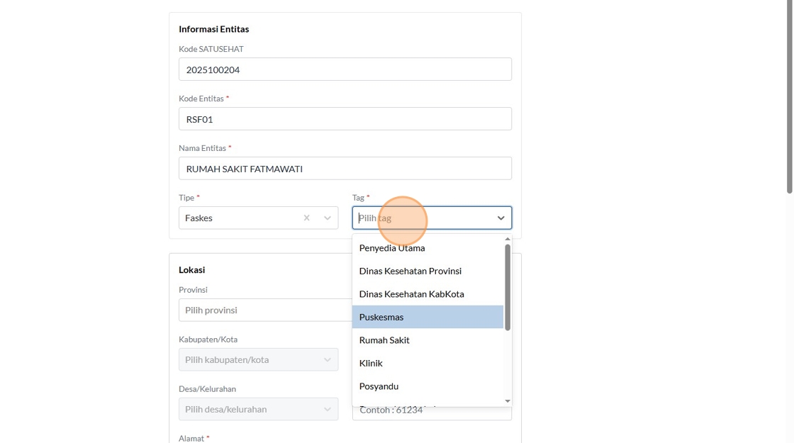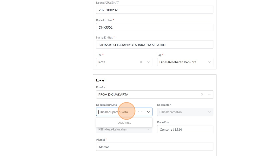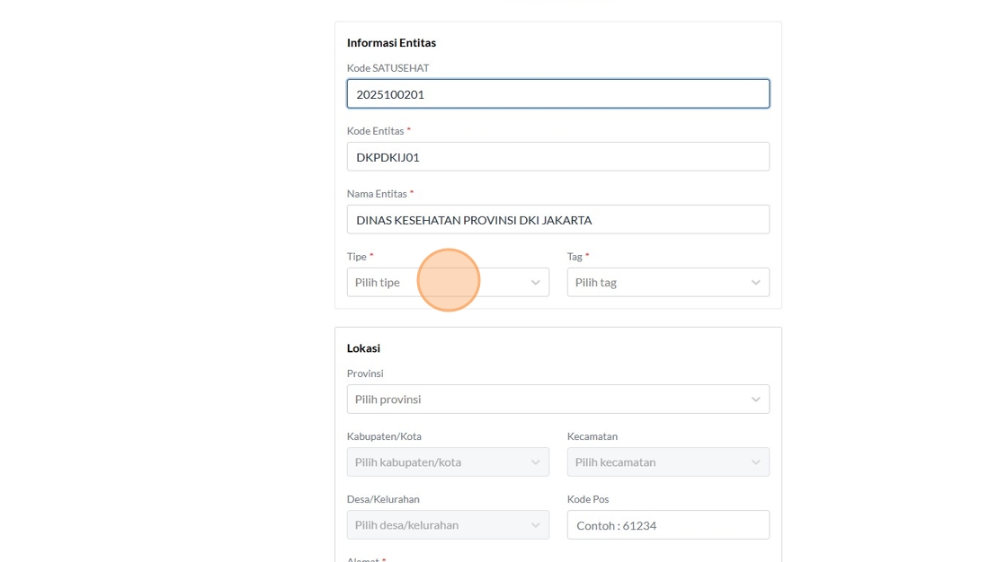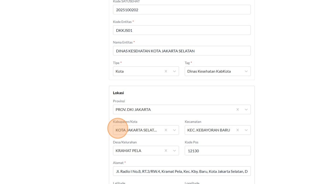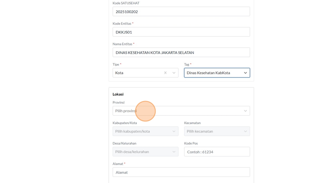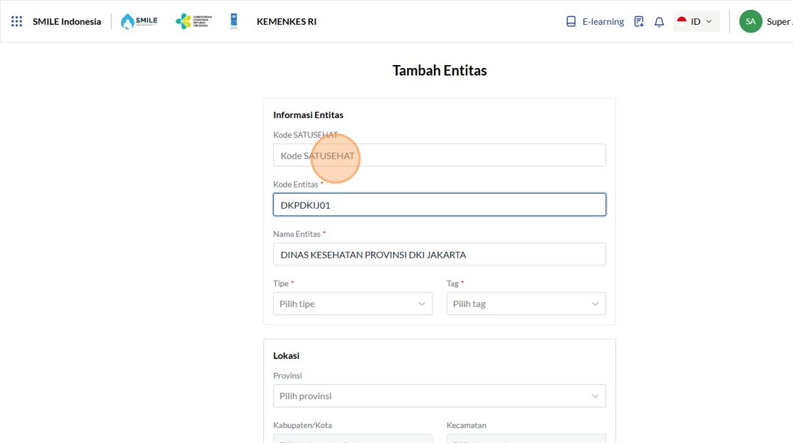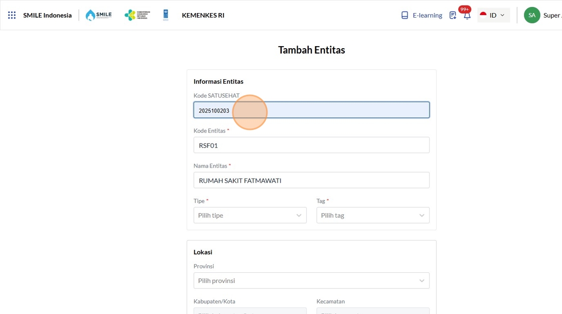 12. Click the "Kode SATUSEHAT" field.