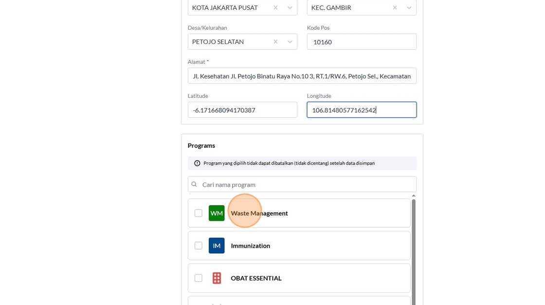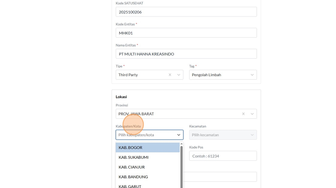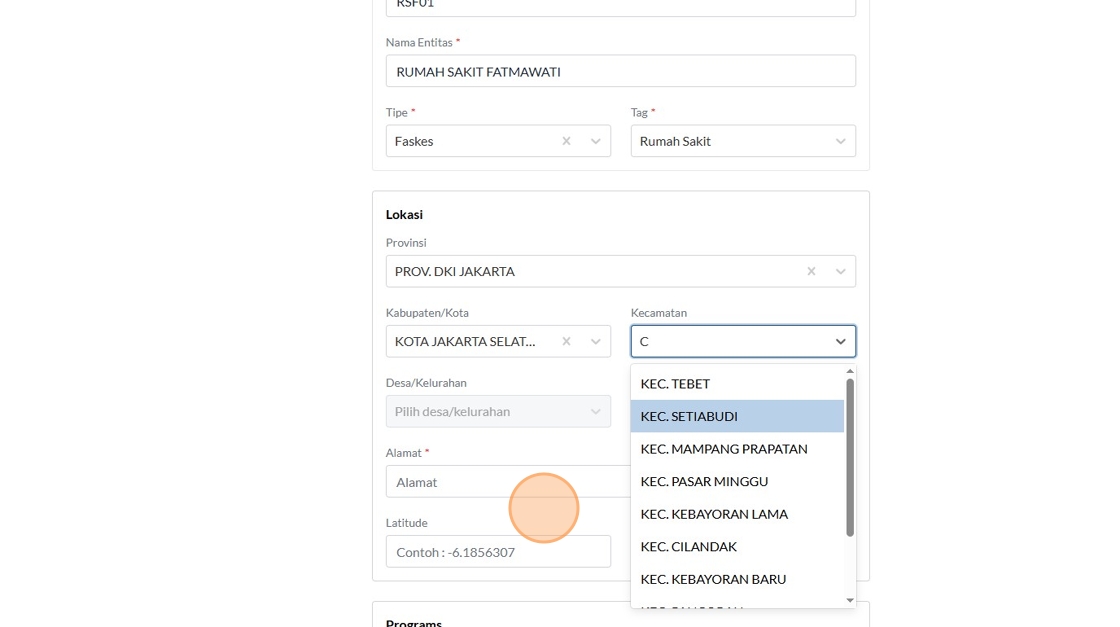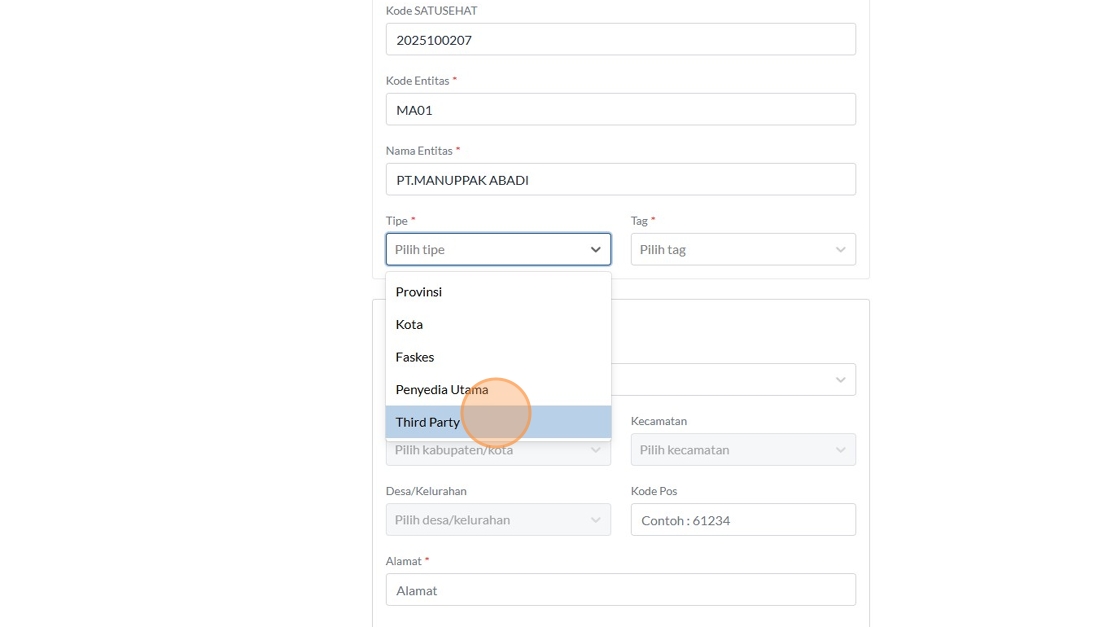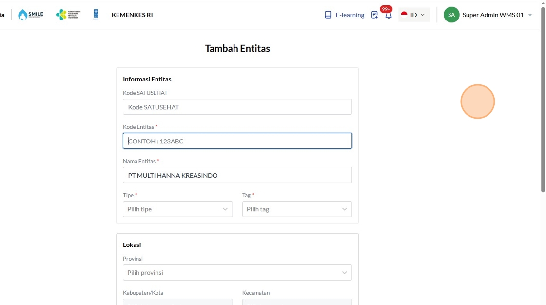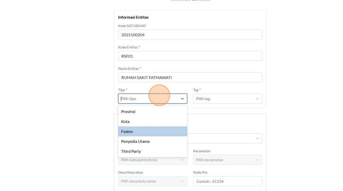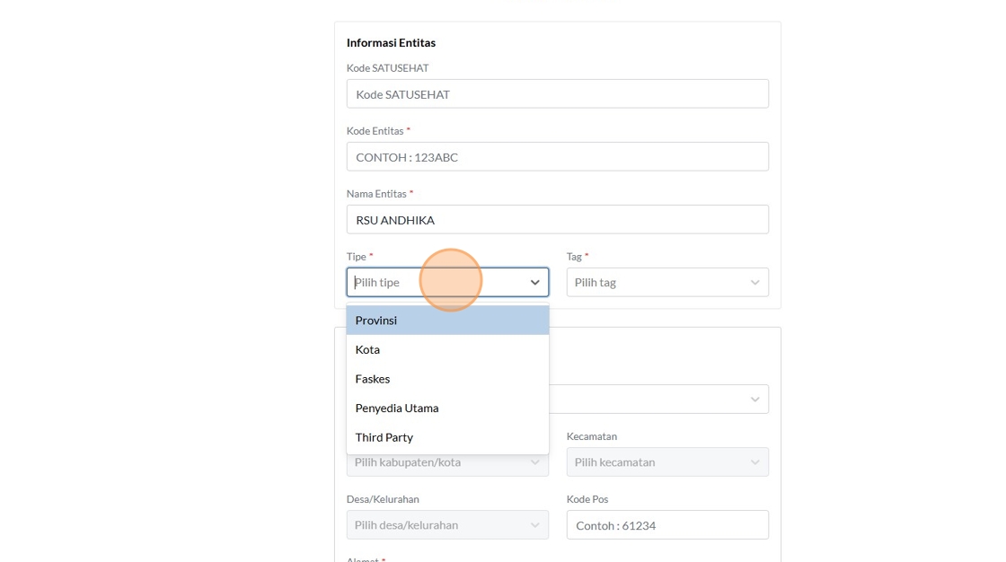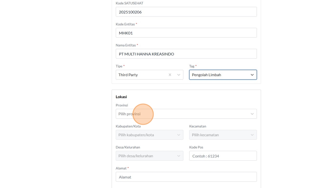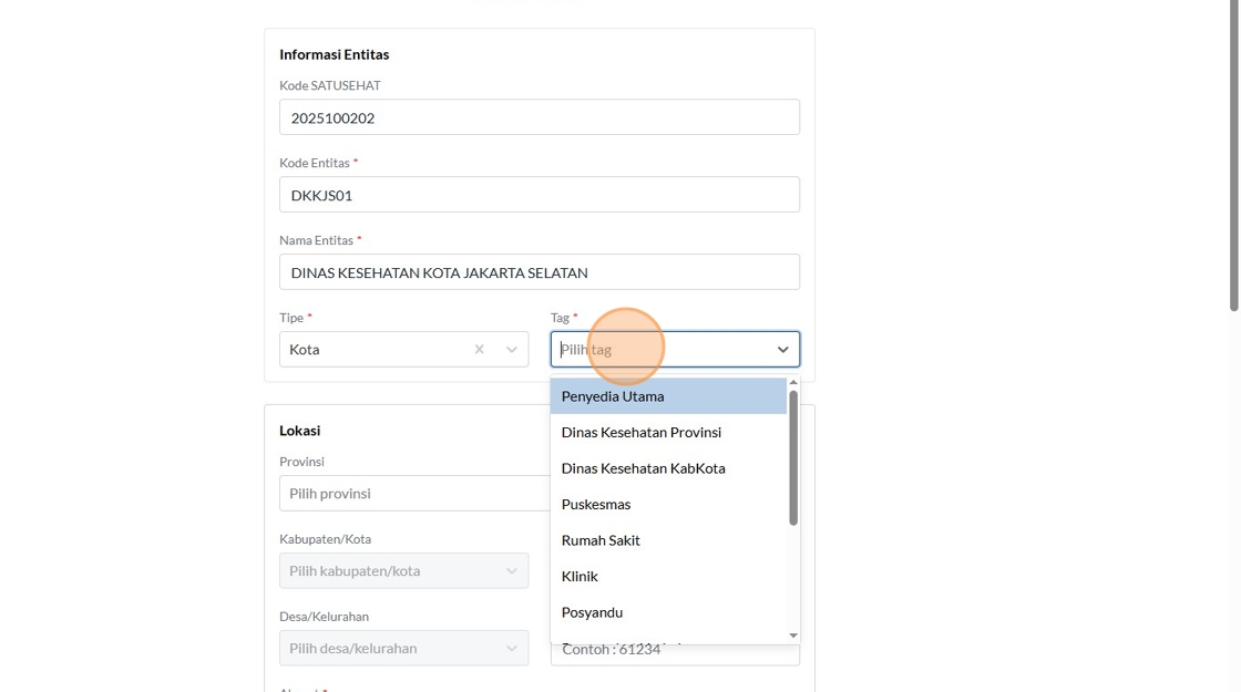 12. Click the "Kode SATUSEHAT" field.