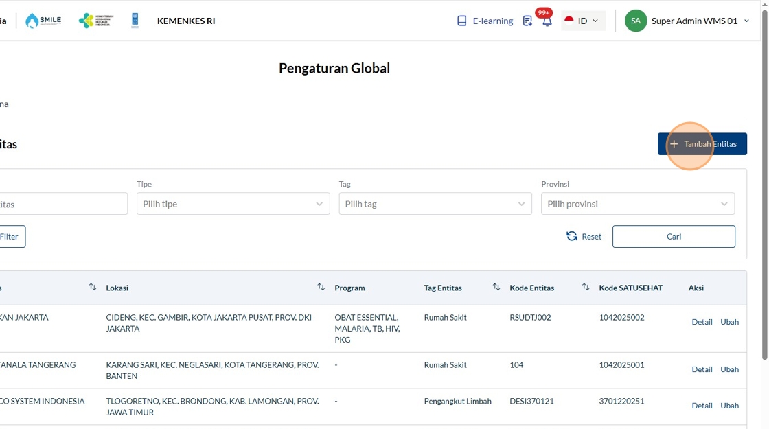 7. Click "Tambah Entitas"