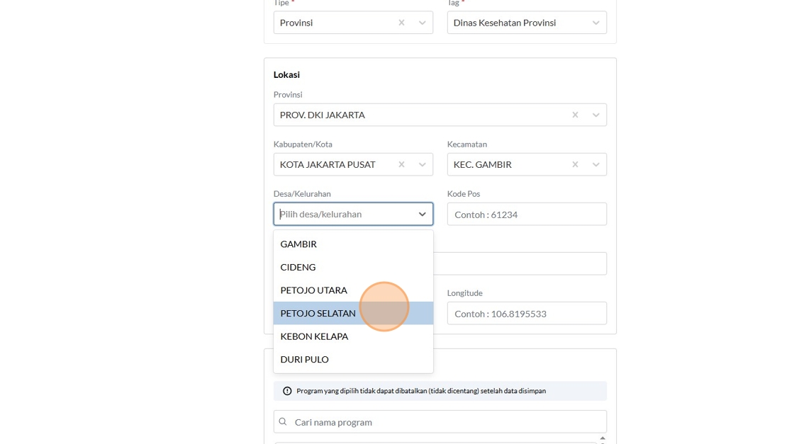 22. Click "KOTA JAKARTA PUSAT"
