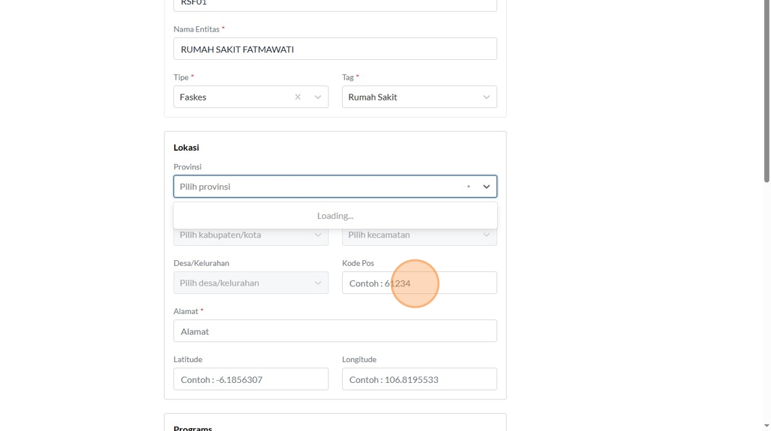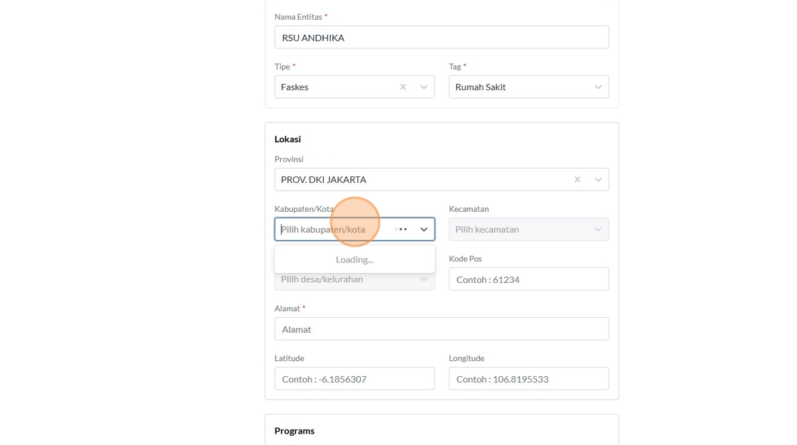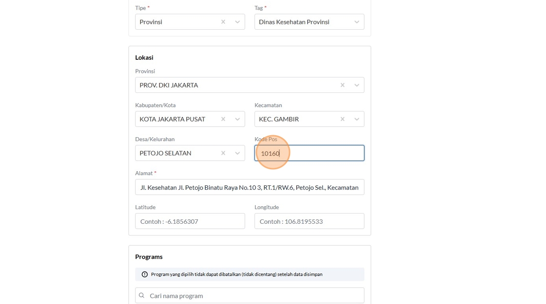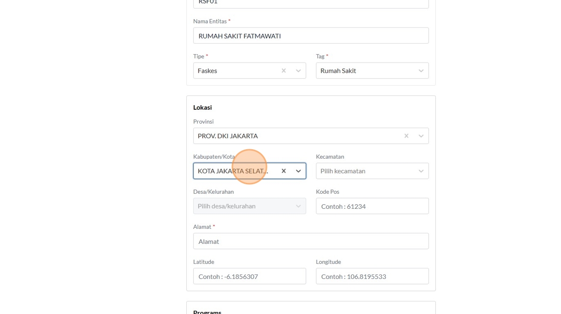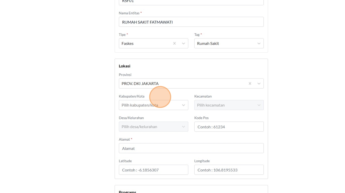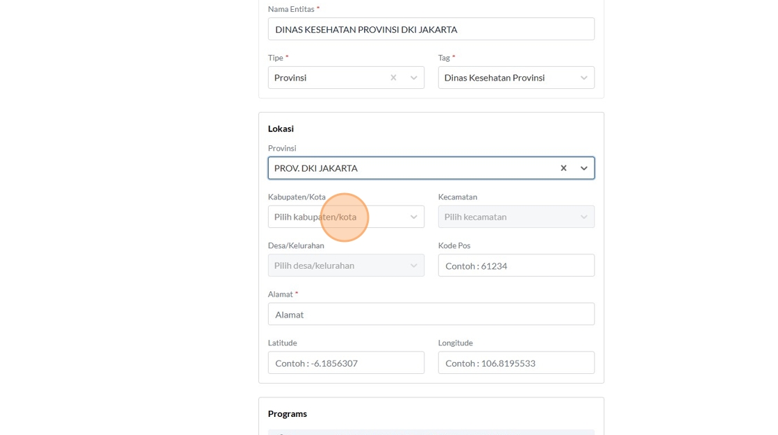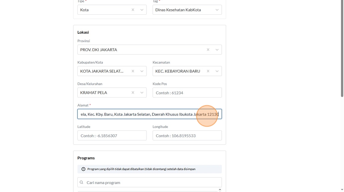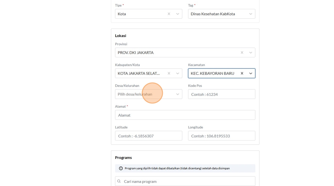 8. Click the "Contoh : Kemenkes RI" field.