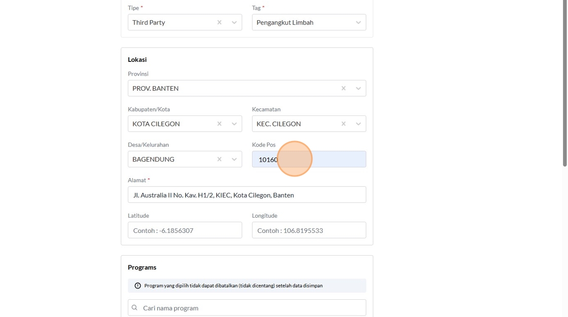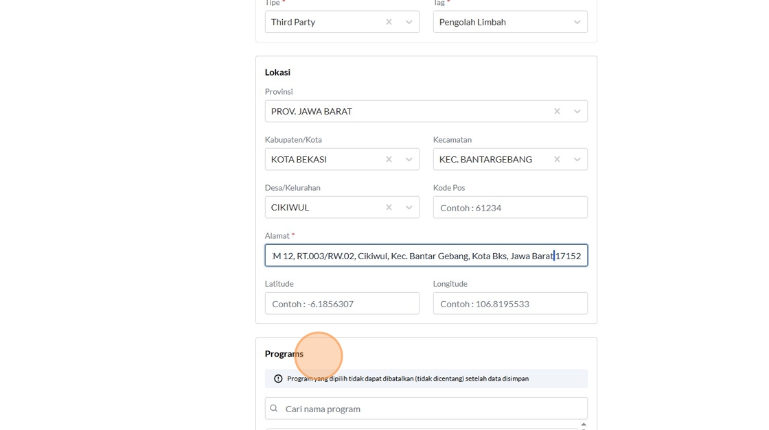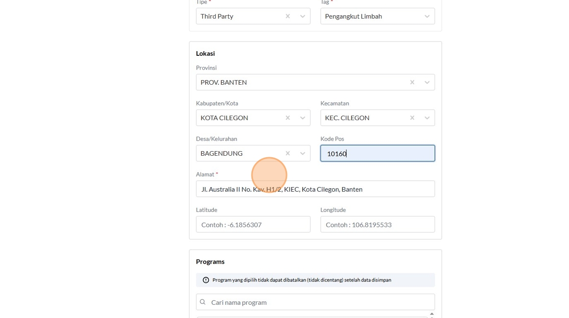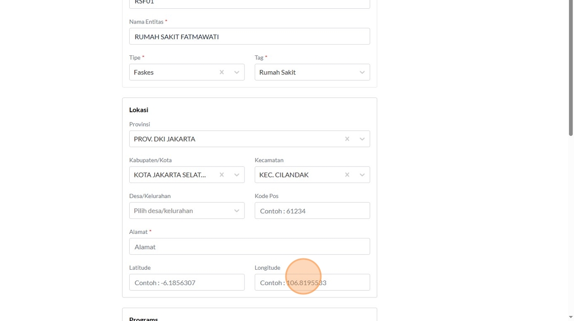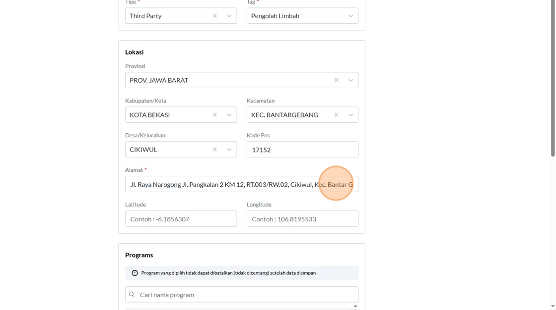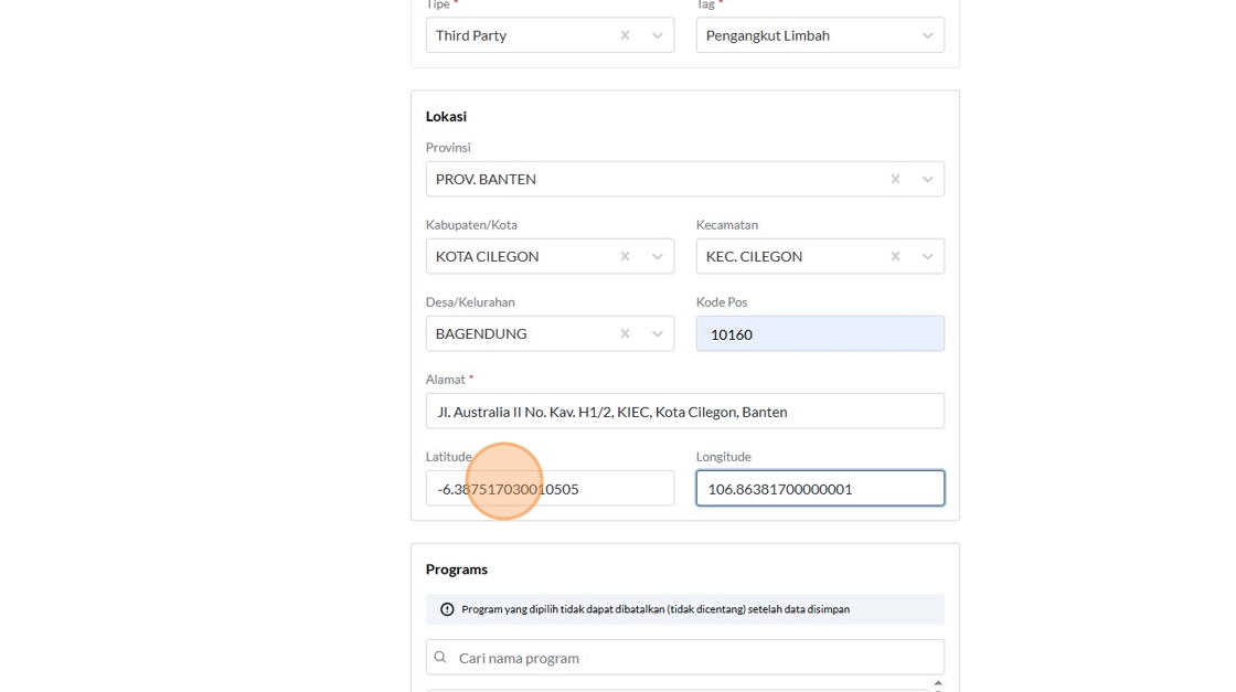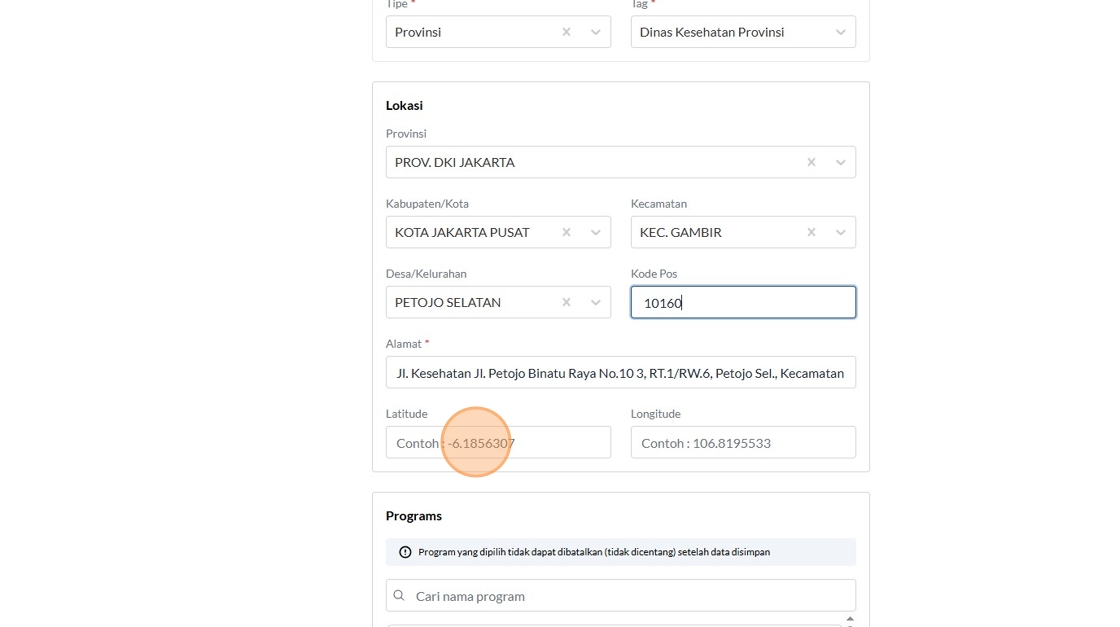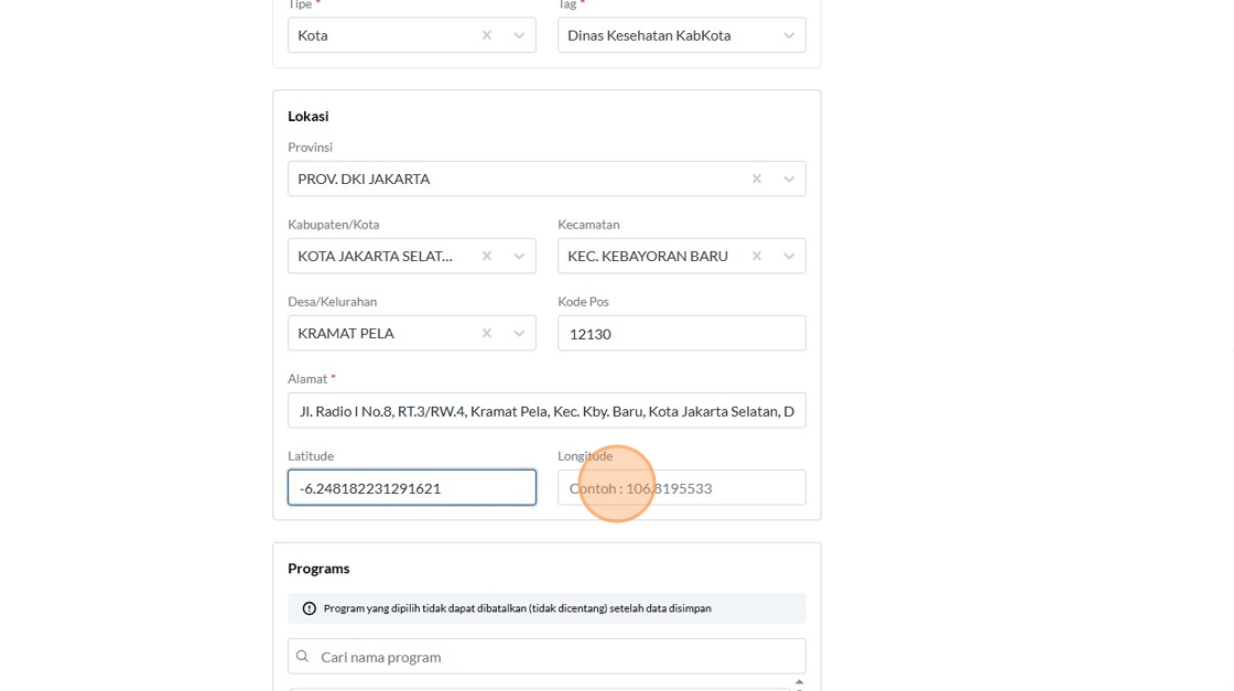 74. Click the "Contoh : 106.8195533" field.