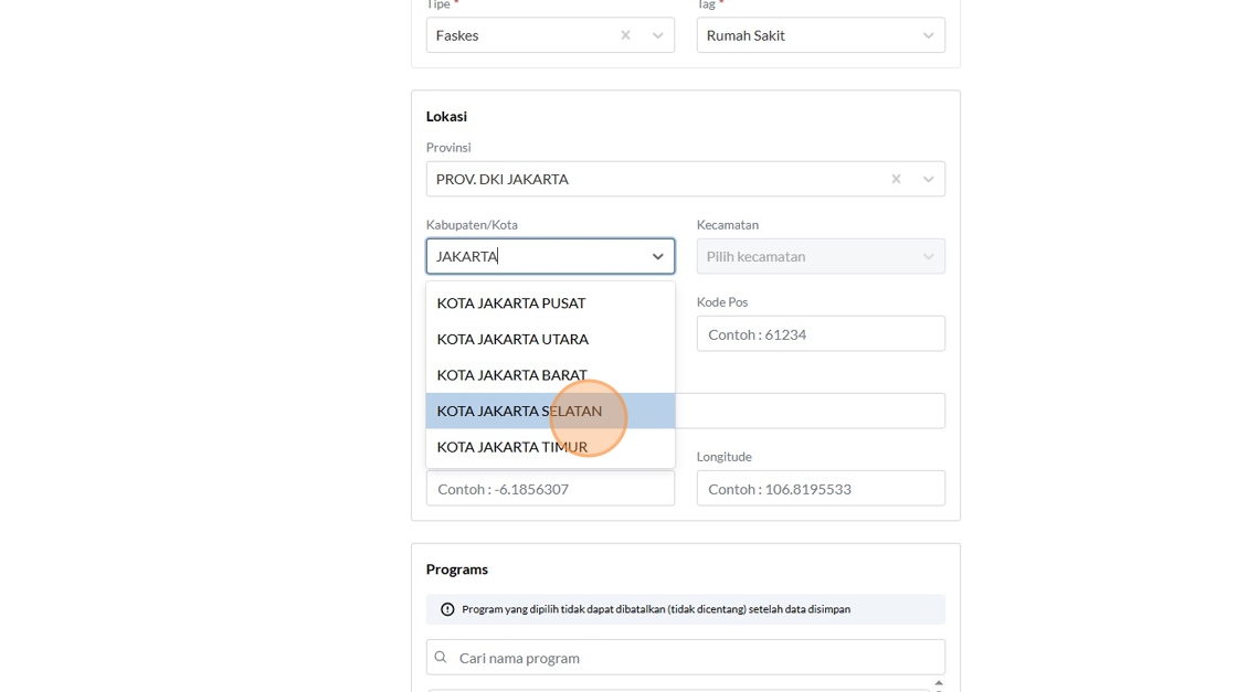 93. Click "KOTA JAKARTA SELATAN"