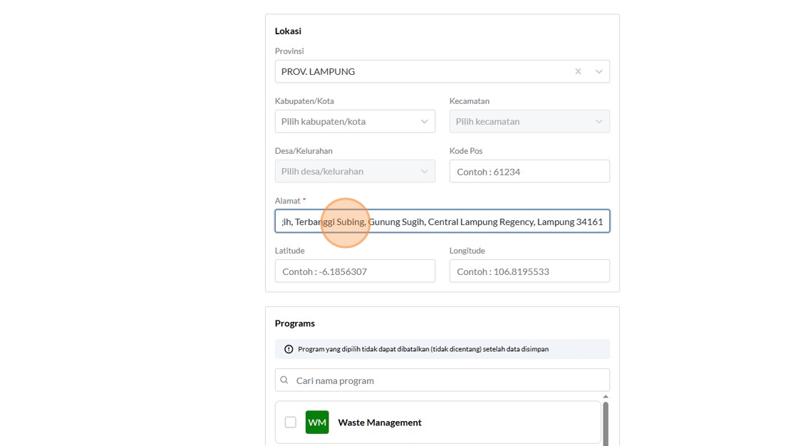 29. Click the "Alamat" field.