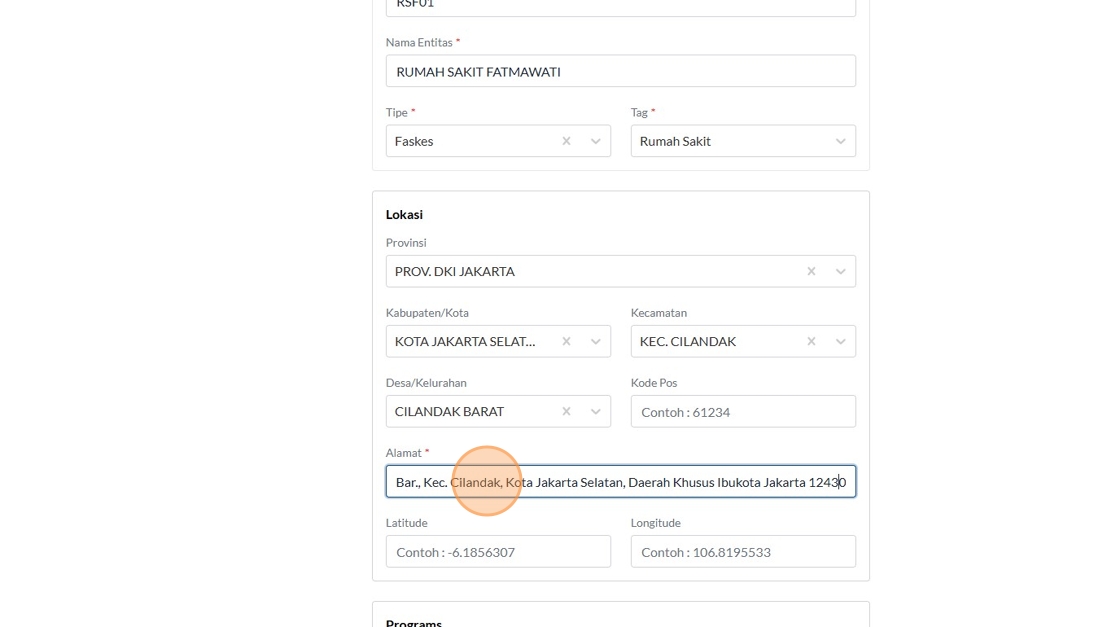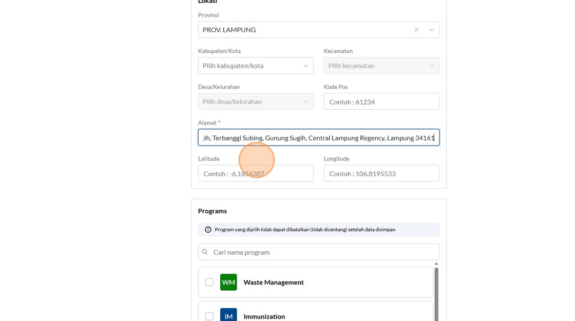 71. Click the "Contoh : -6.1856307" field.