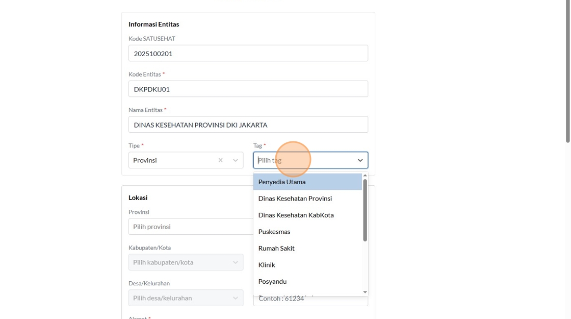 17. Click "Dinas Kesehatan Provinsi"