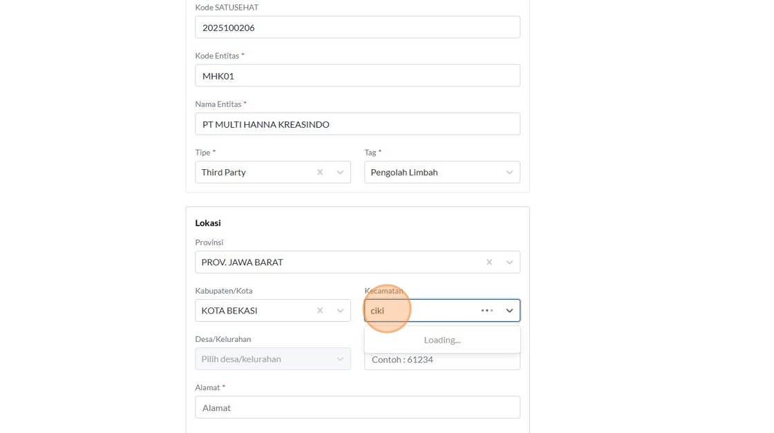 27. Click the "Alamat" field.