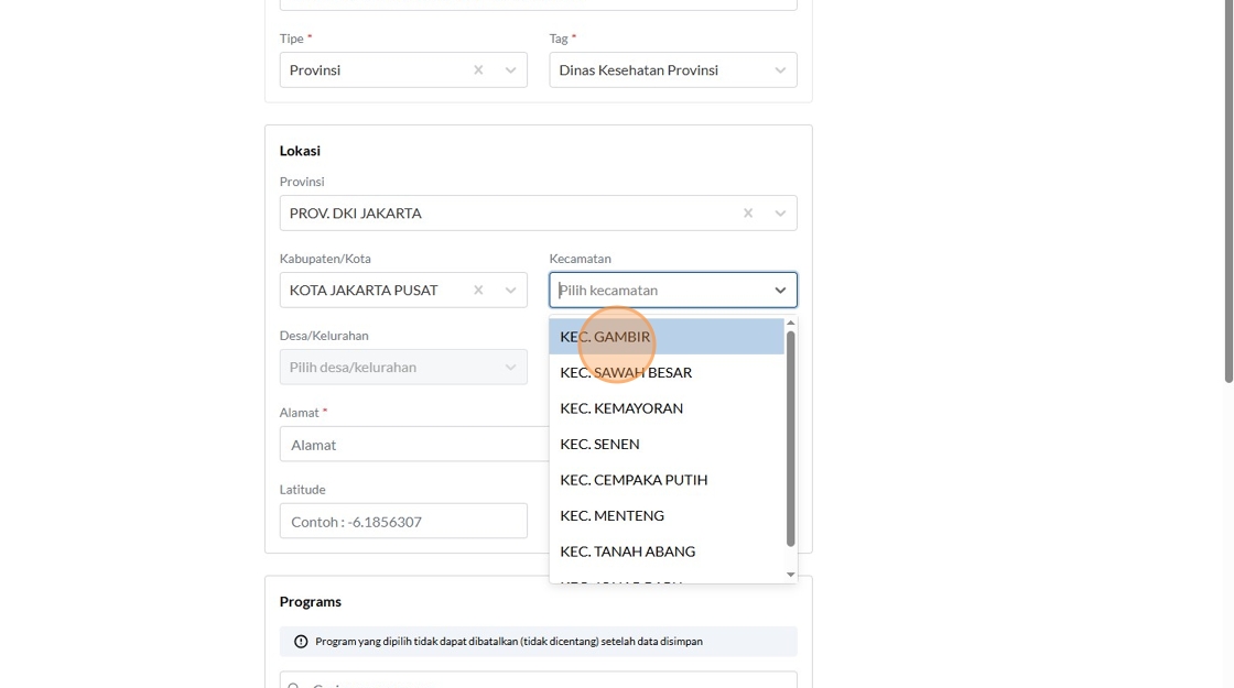 24. Click "KEC. GAMBIR"
