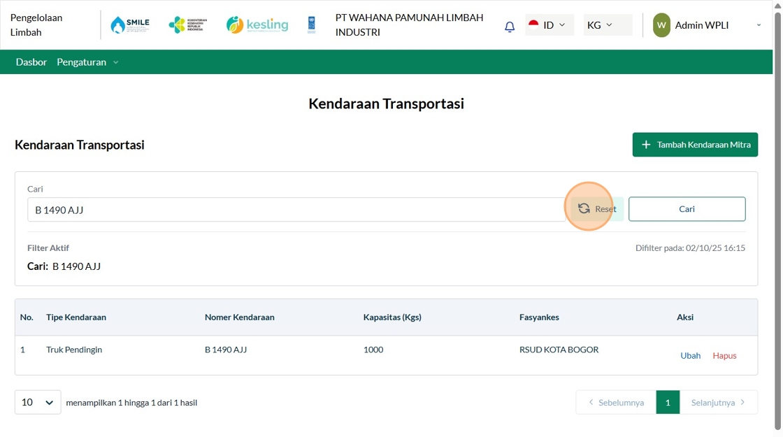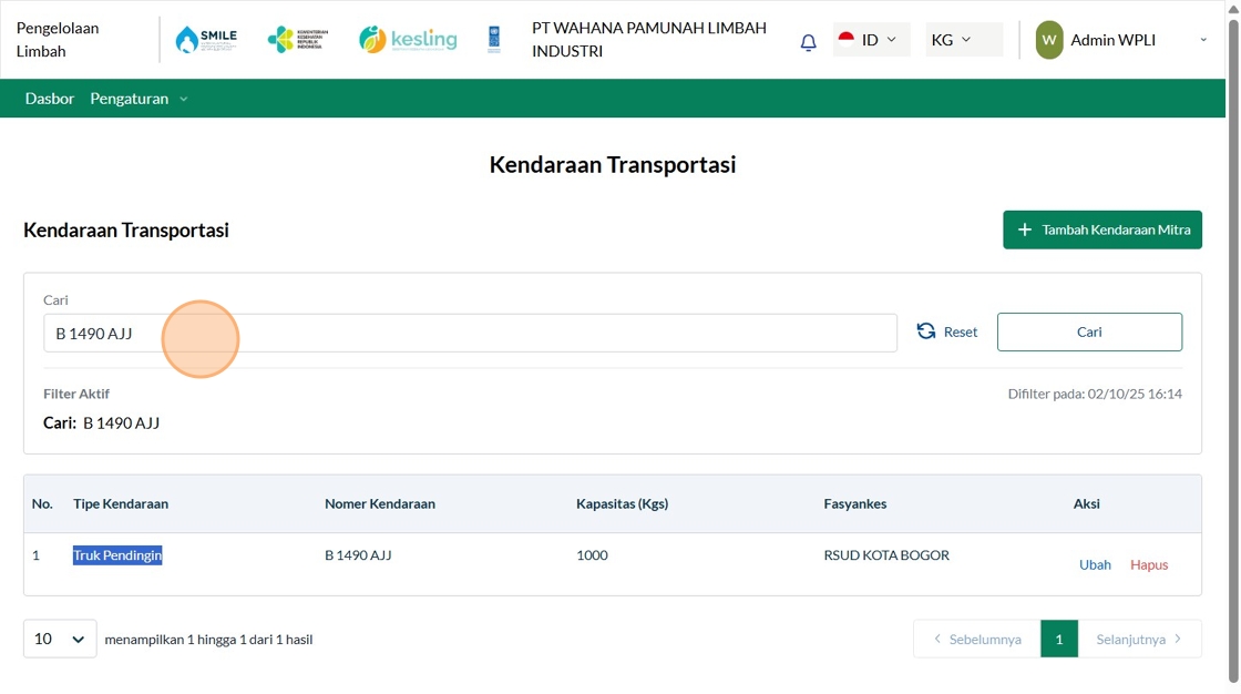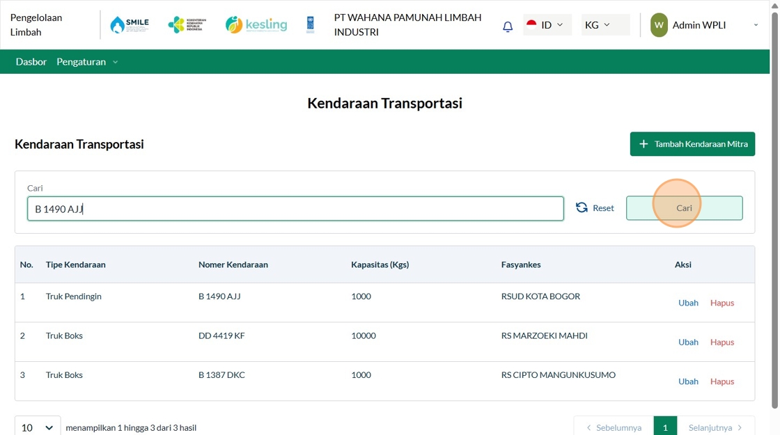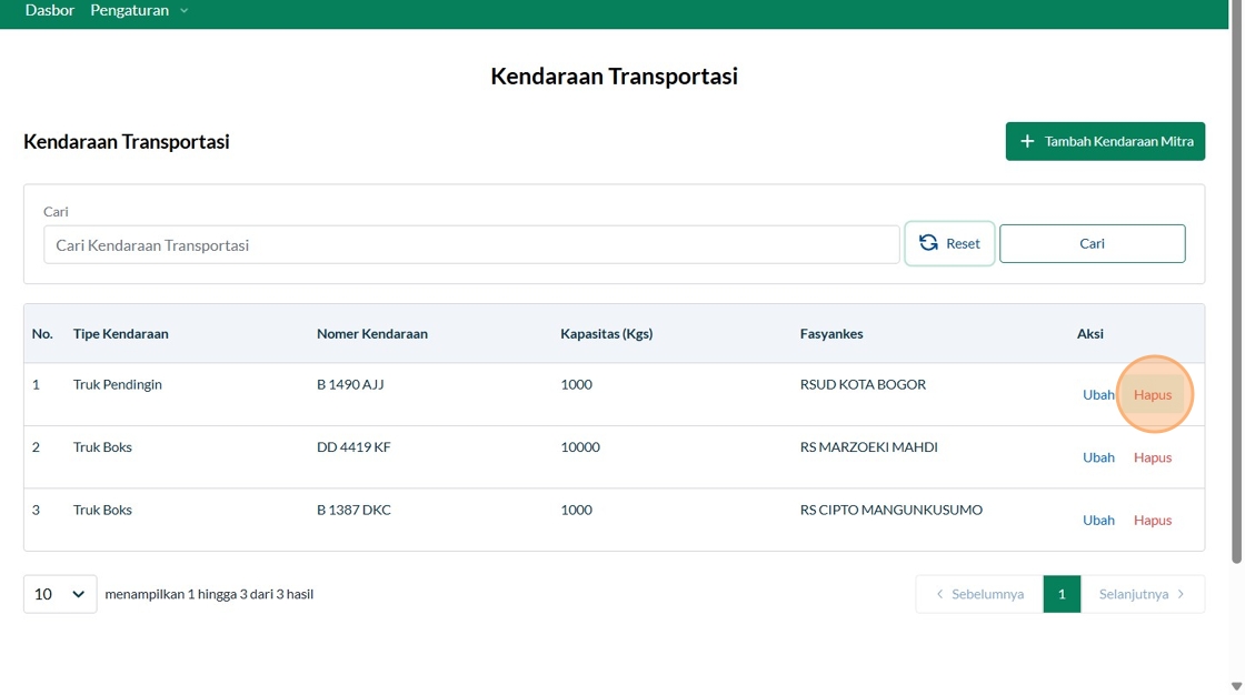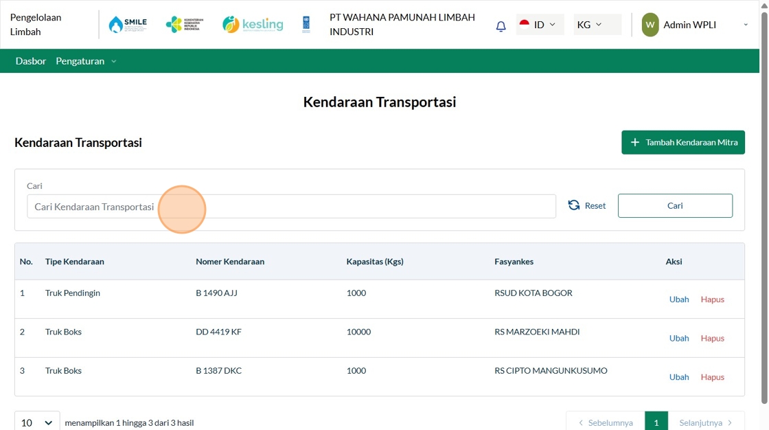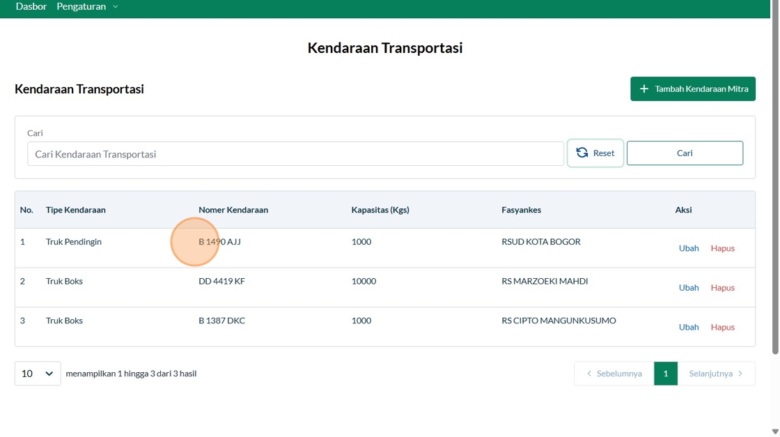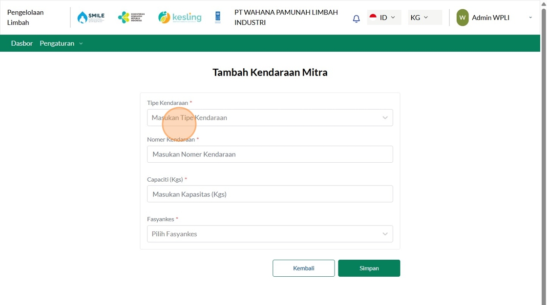 2. Click "Tambah Kendaraan Mitra"