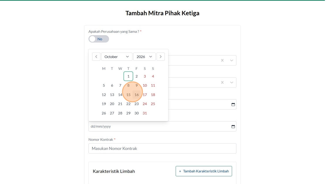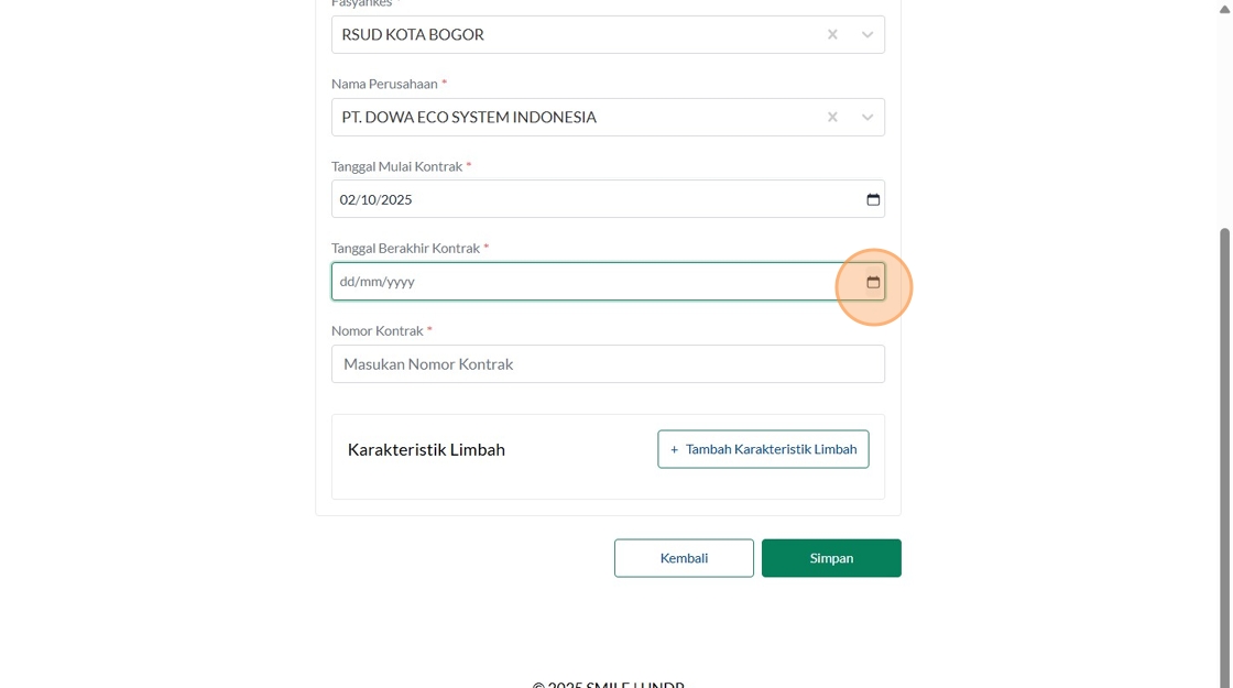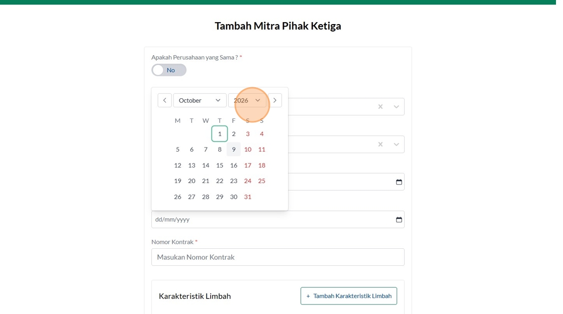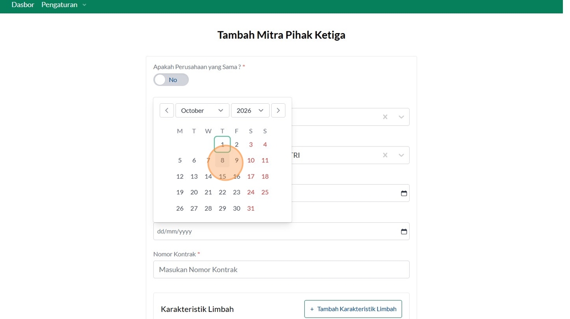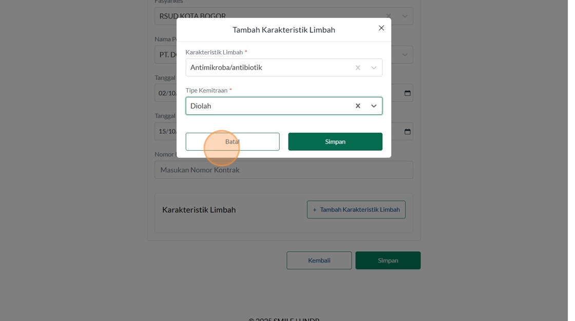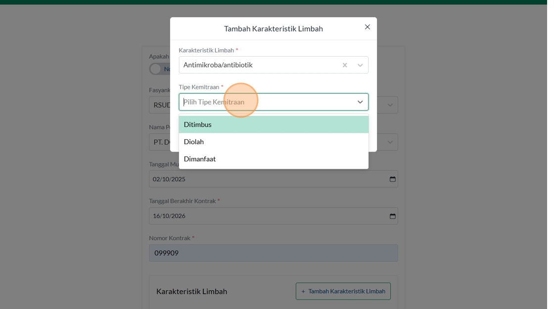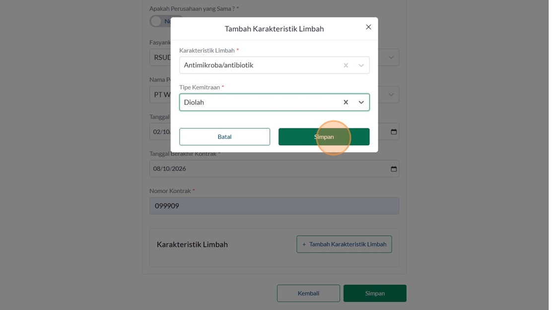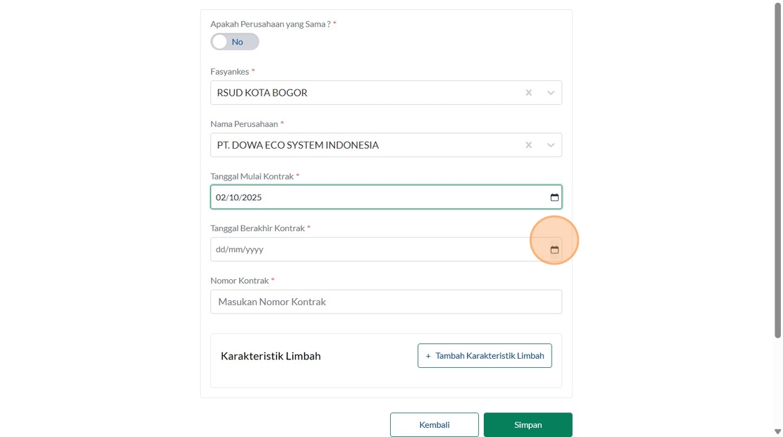 29. Click "Tambah Mitra Pihak KetigaApakah Perusahaan yang Sama ?NoFasyankesRSUD KOTA BOGORNama Perusahaan*PT WAHANA PAMUNAH LIMBAH INDUSTRITanggal Mulai..."