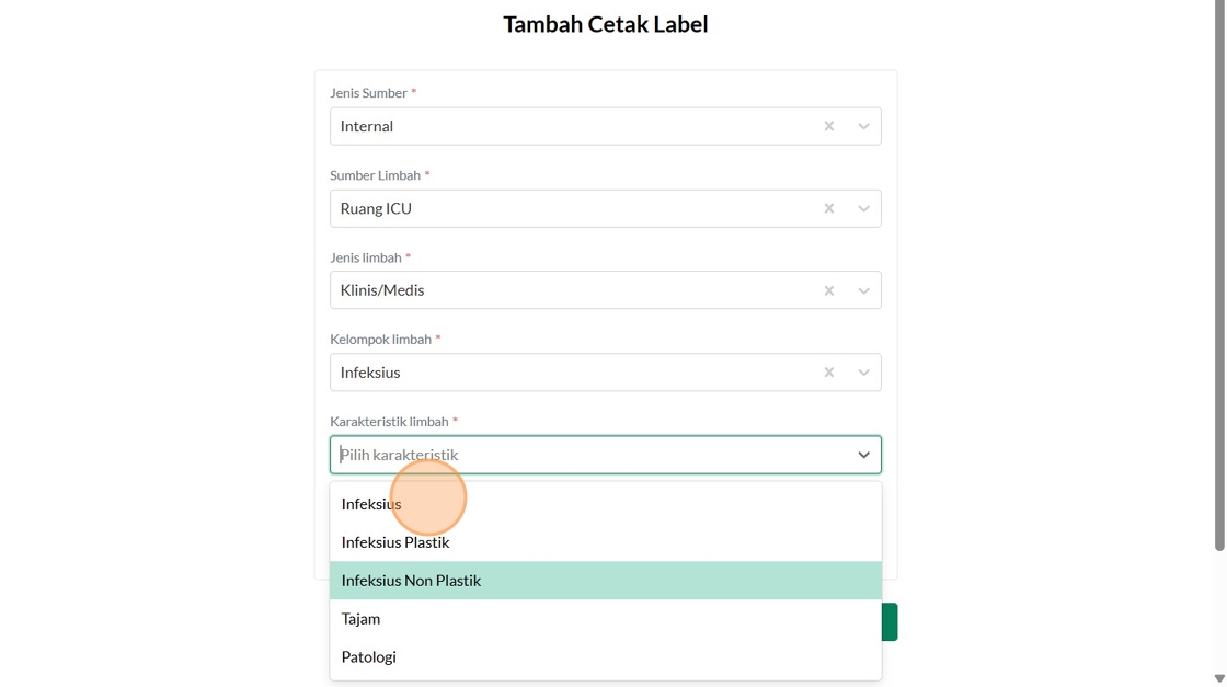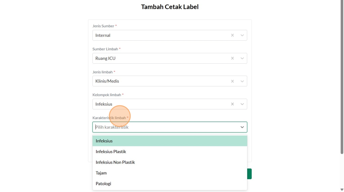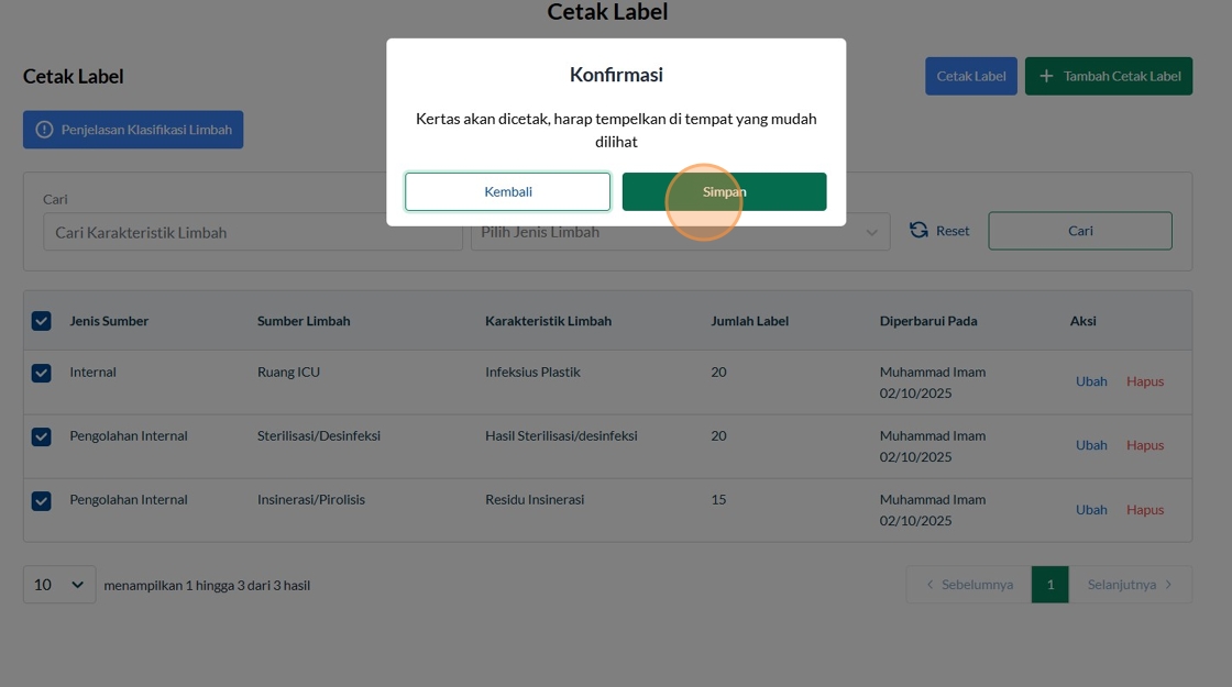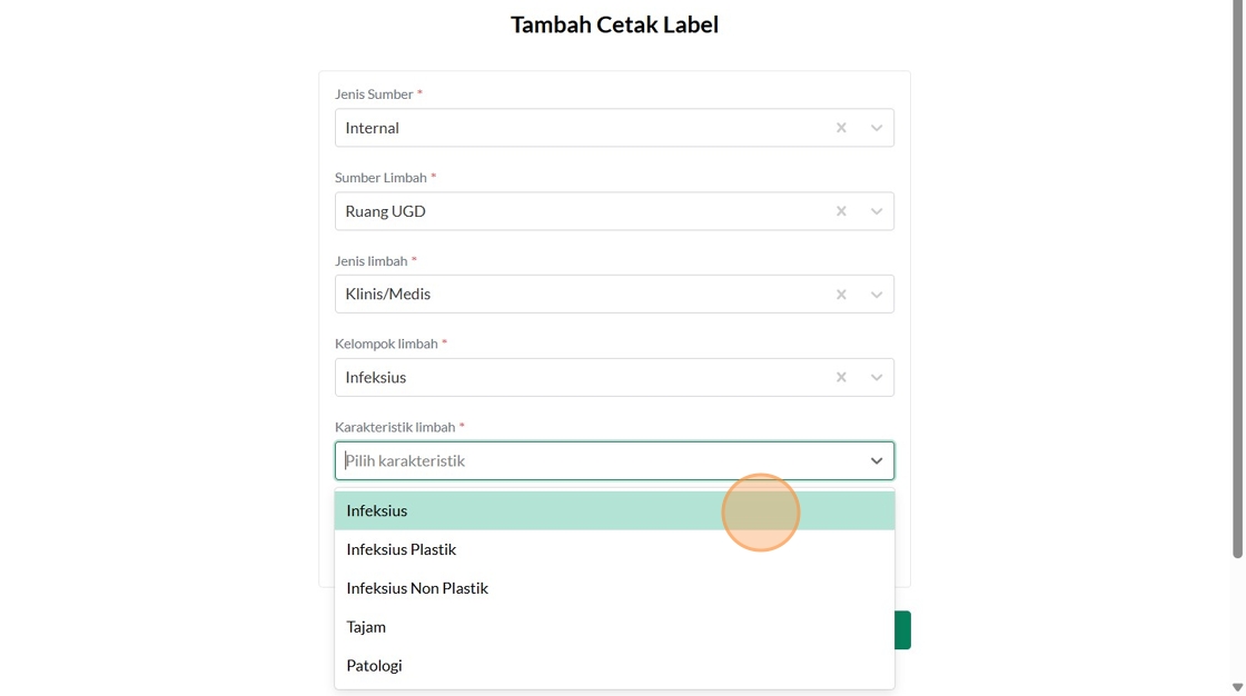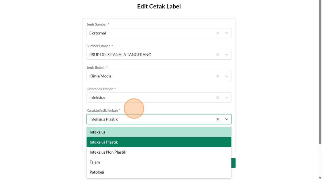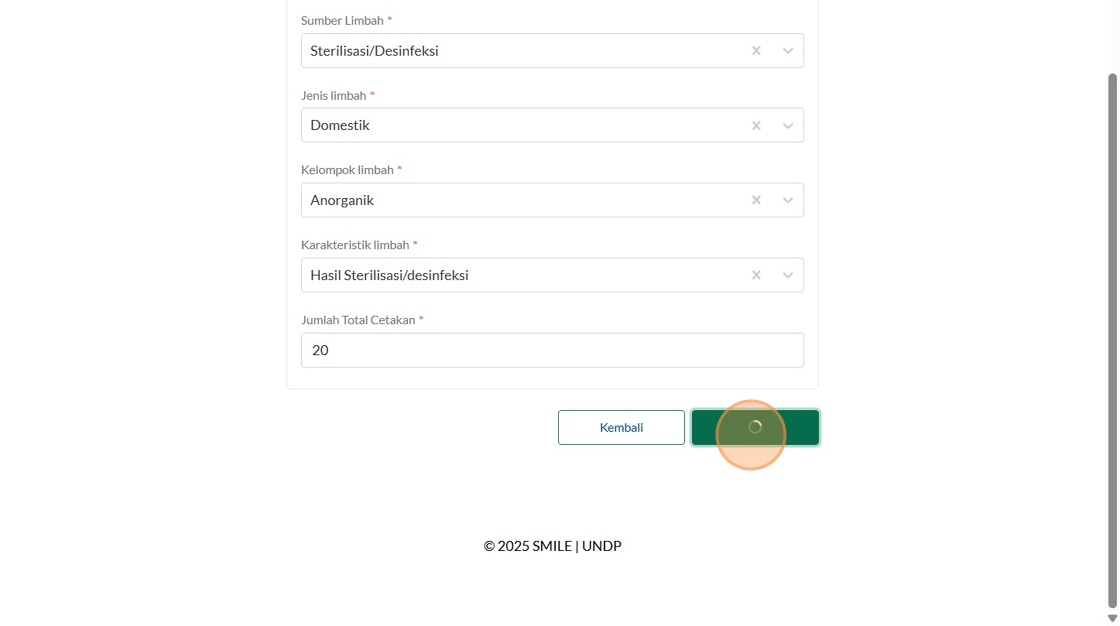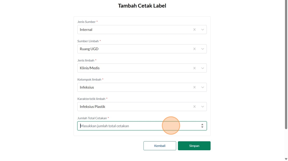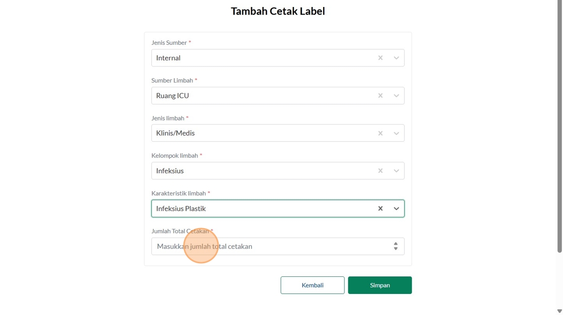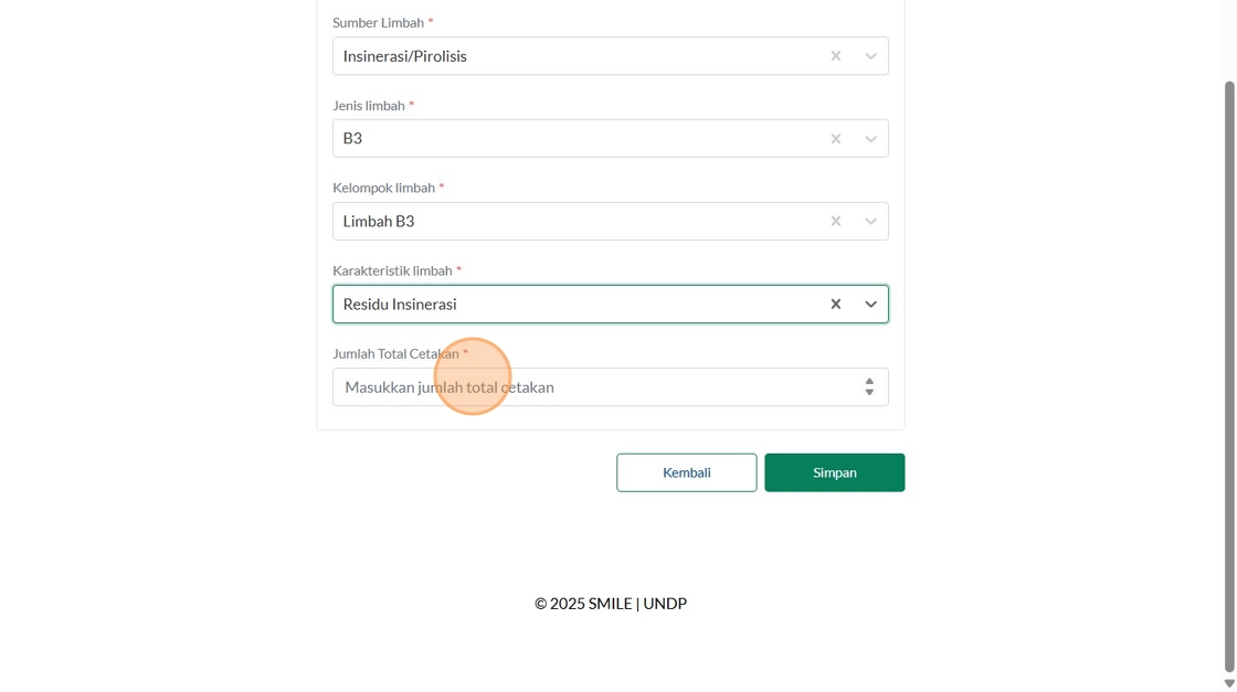 21. Click "Sumber LimbahJenis SumberEksternalPilih FasyankesMasukan Nama FasyankesNama FasyankesKembaliSimpan"