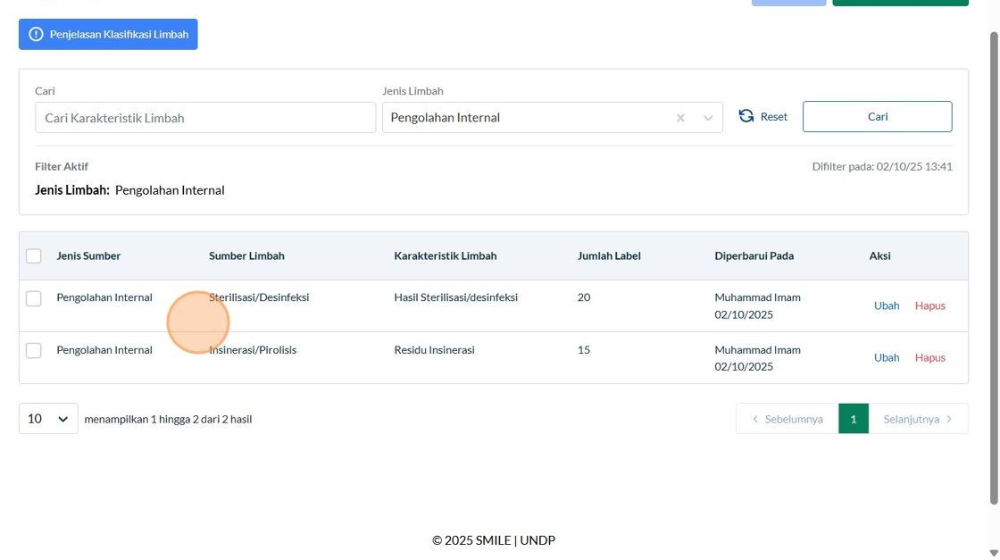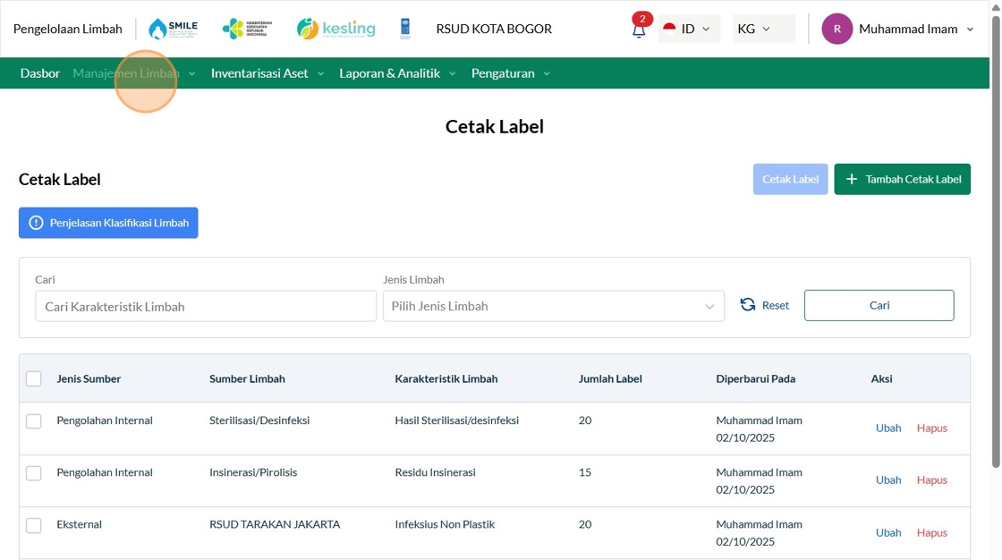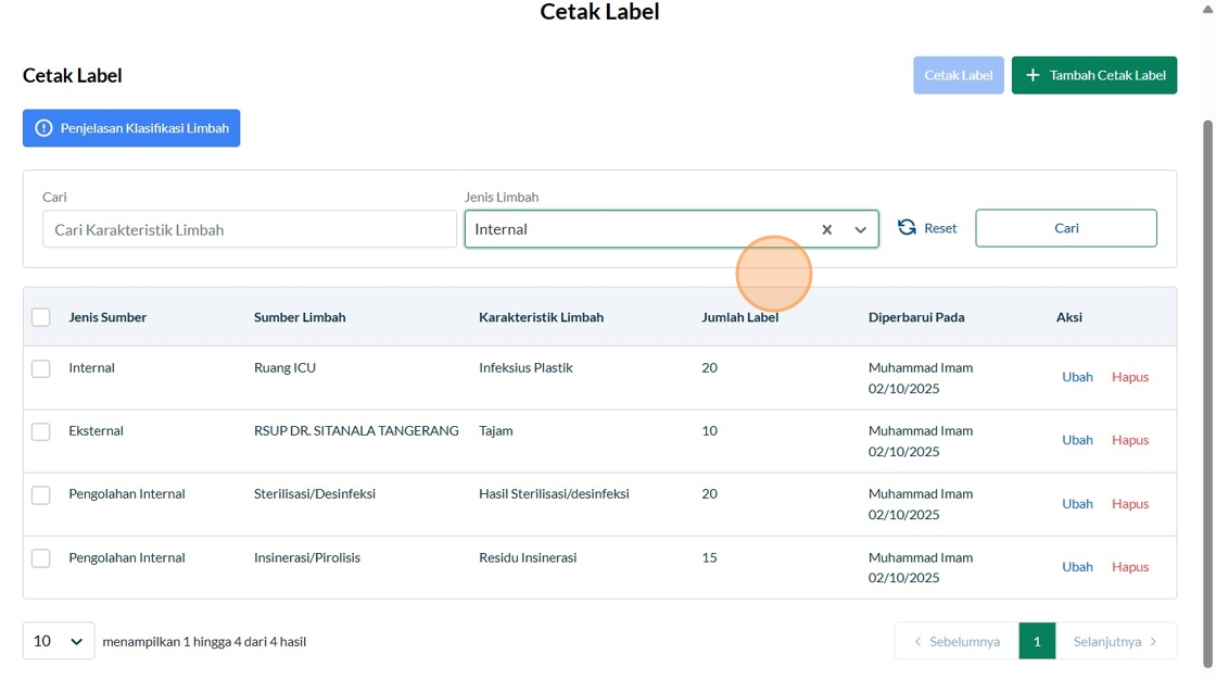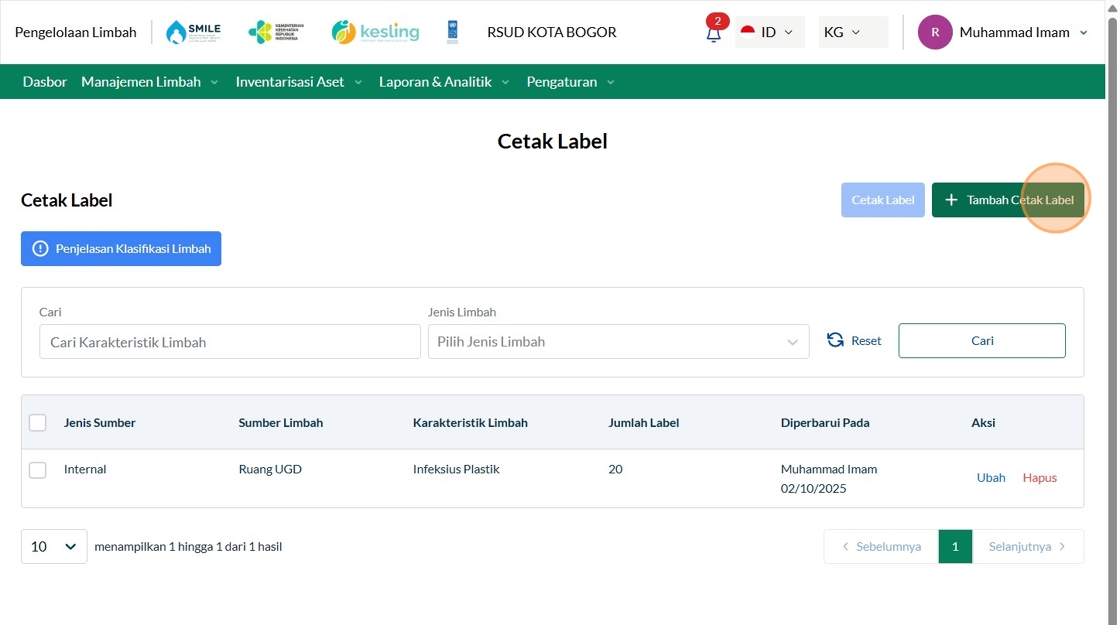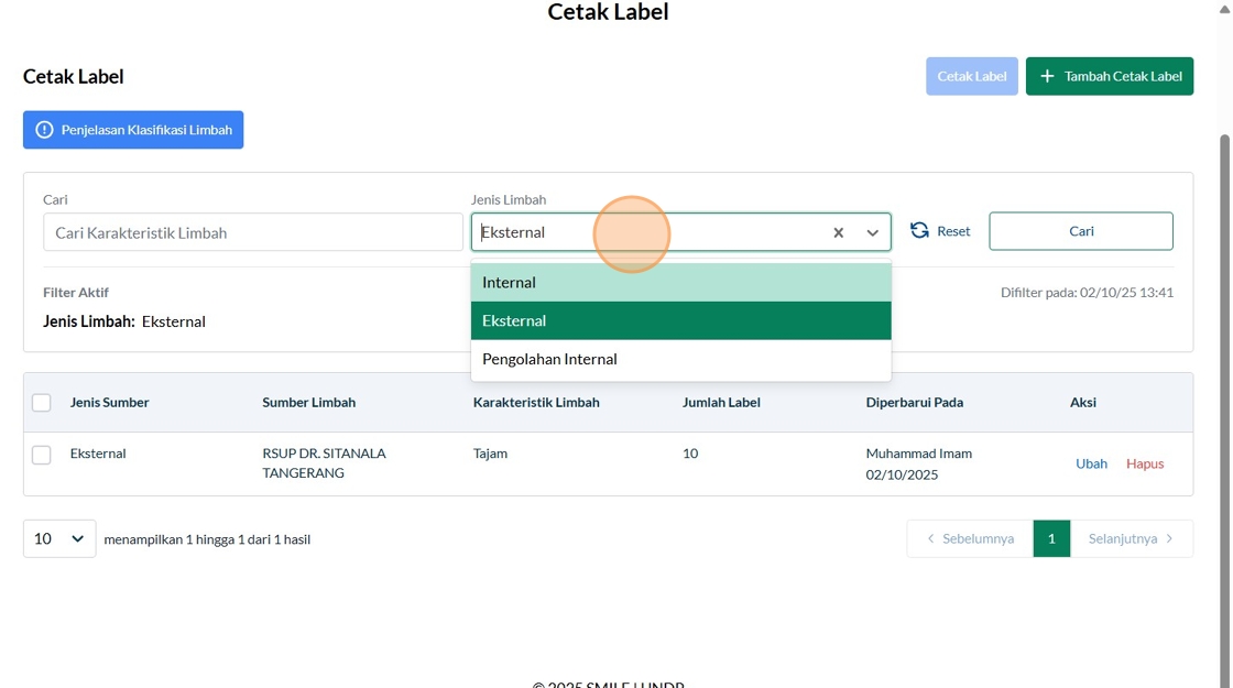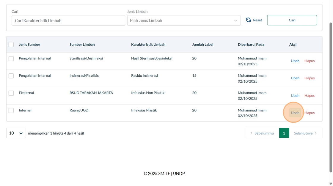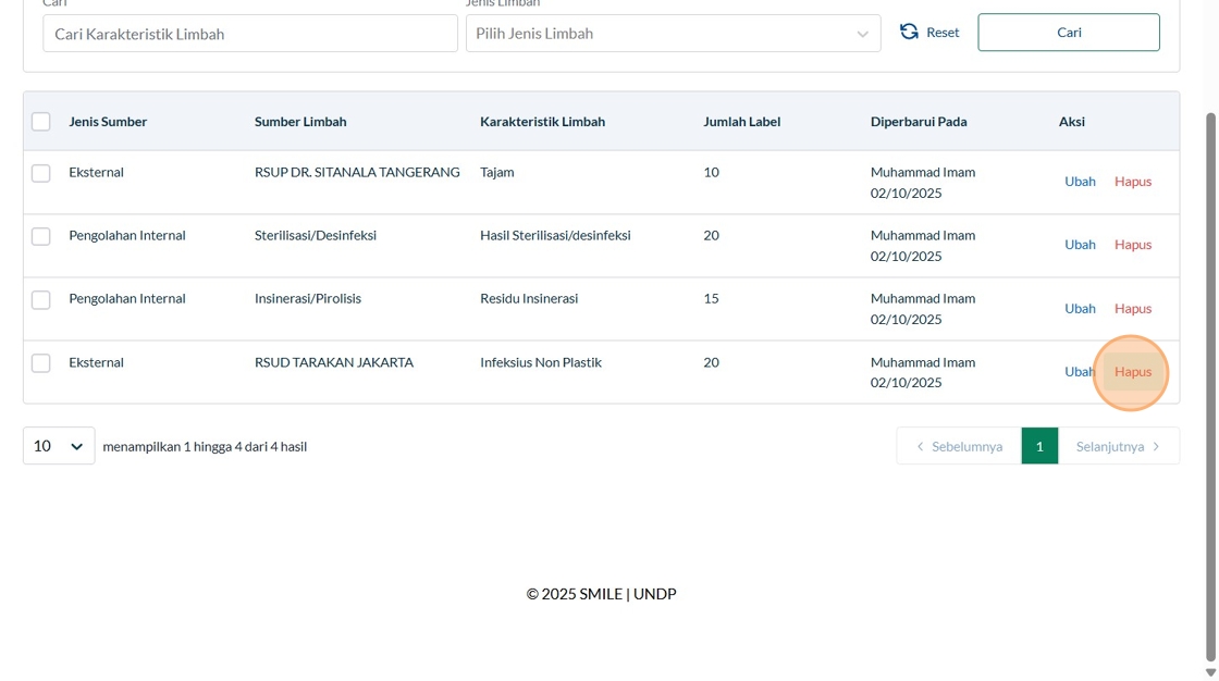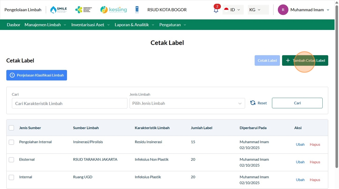 52. Click "No.Jenis SumberSumber LimbahDiperbaruiAksi1EksternalRSUD TARAKAN JAKARTAMuhammad Imam02/10/2025UbahHapus10menampilkan 1 hingga 1 dari 1 hasilSeb..."