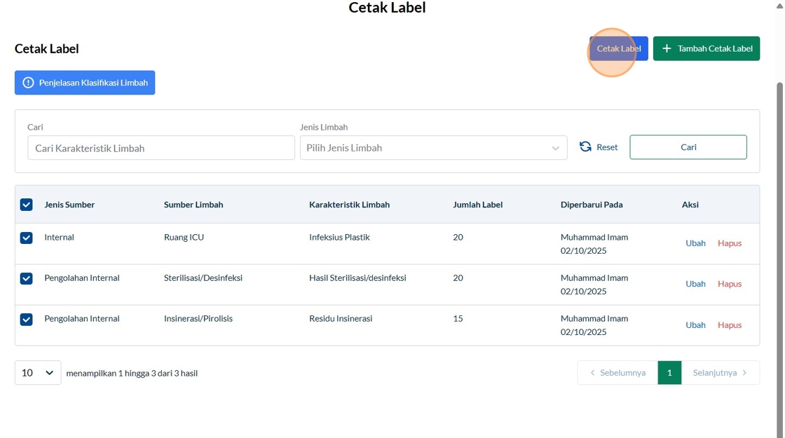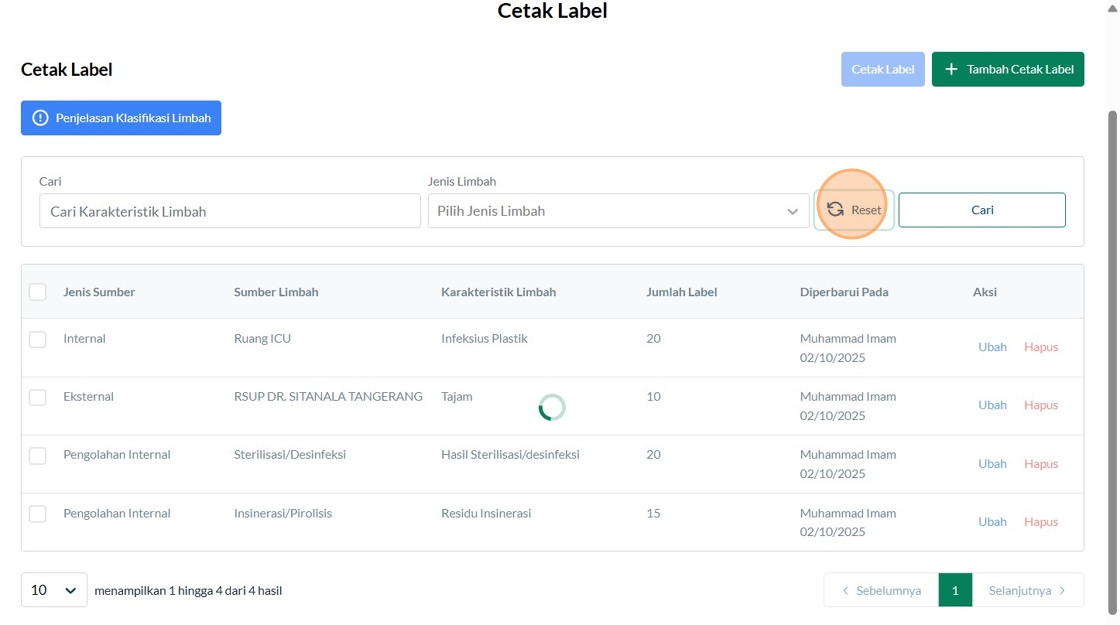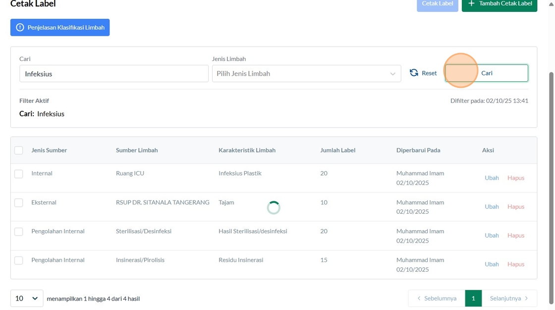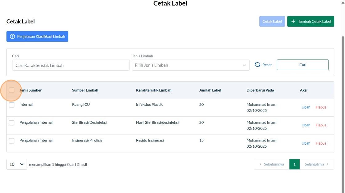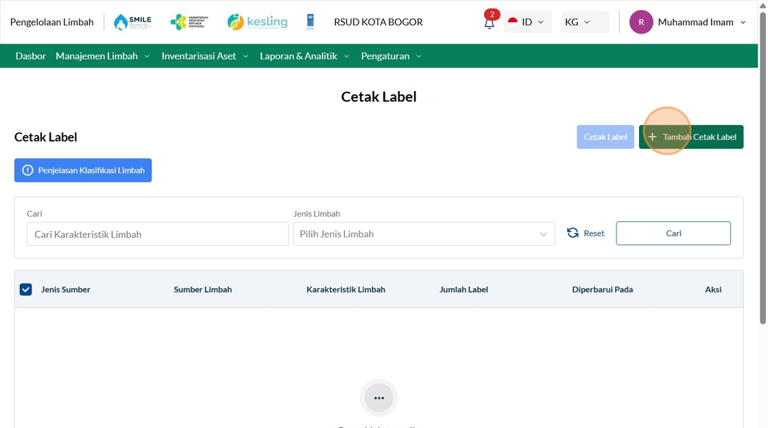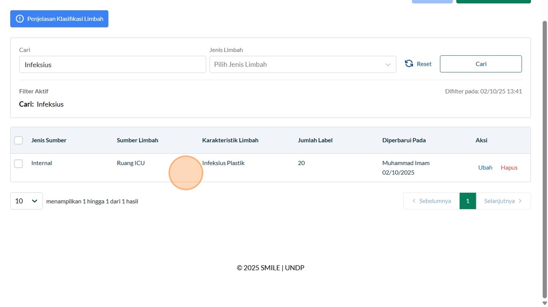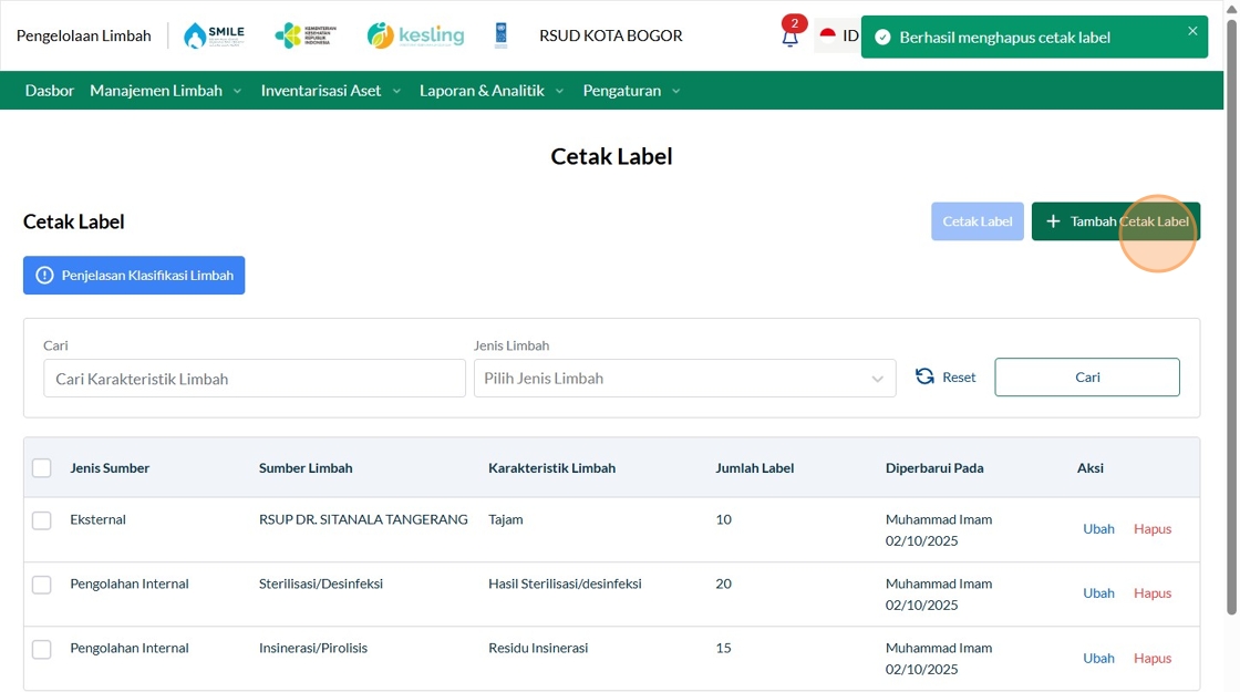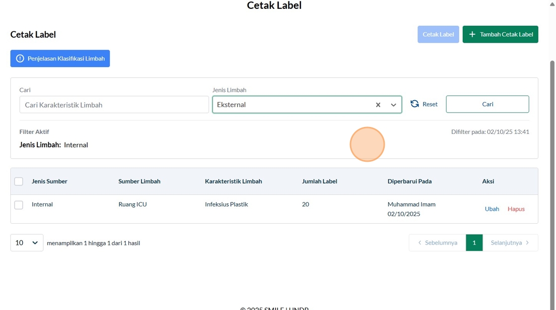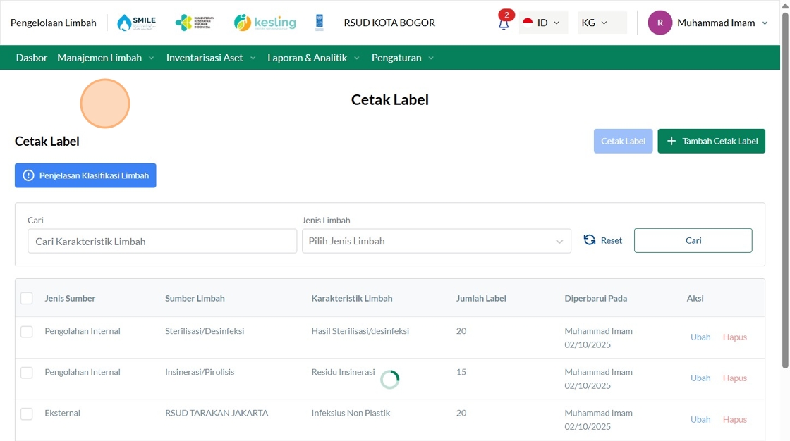 52. Click "No.Jenis SumberSumber LimbahDiperbaruiAksi1EksternalRSUD TARAKAN JAKARTAMuhammad Imam02/10/2025UbahHapus10menampilkan 1 hingga 1 dari 1 hasilSeb..."