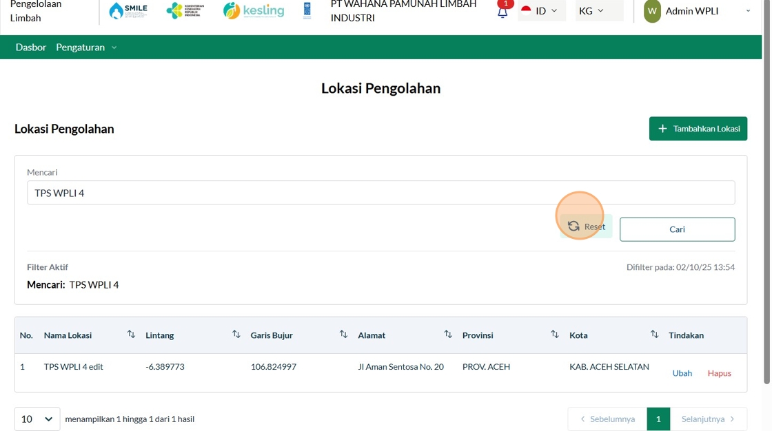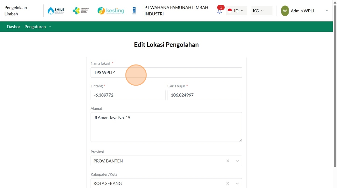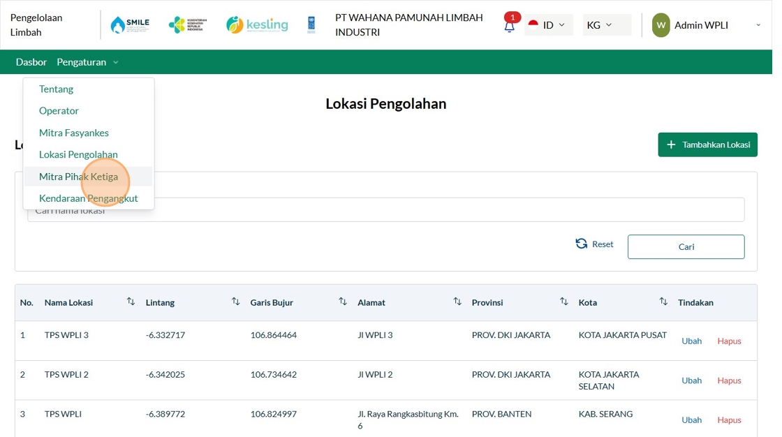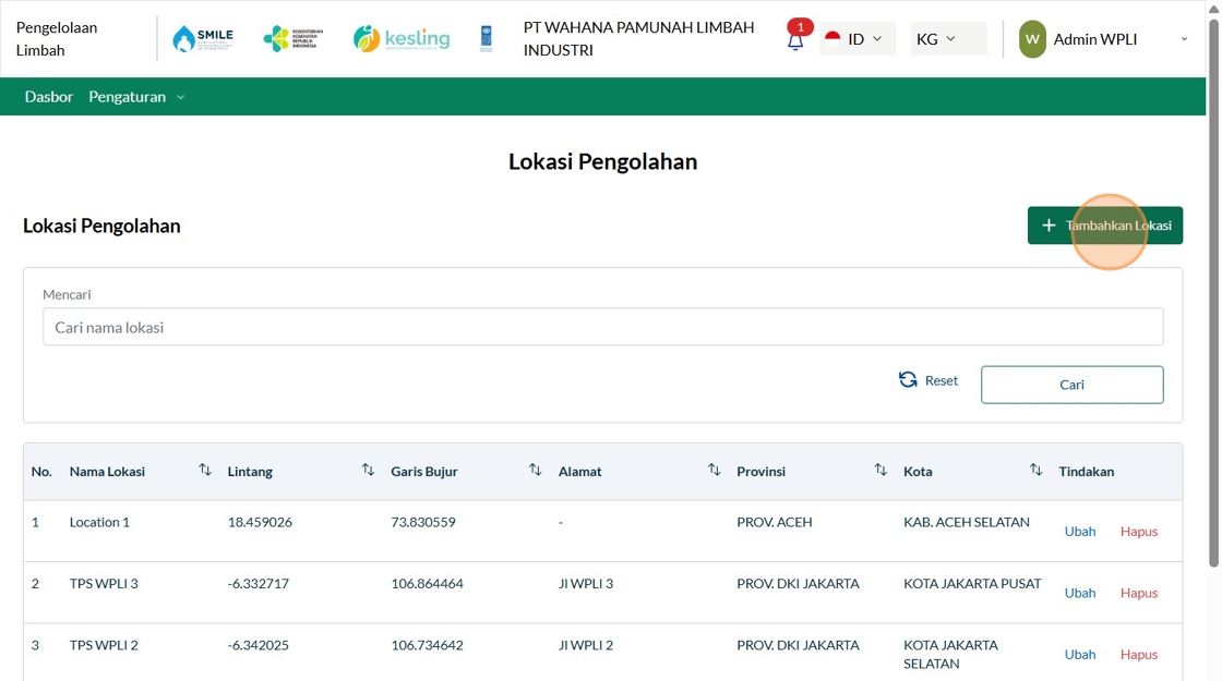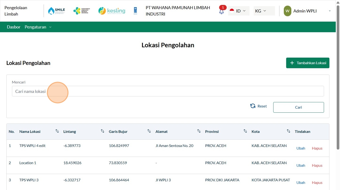 40. Click "Berhasil menghapus lokasi pengolahan"