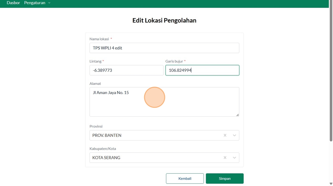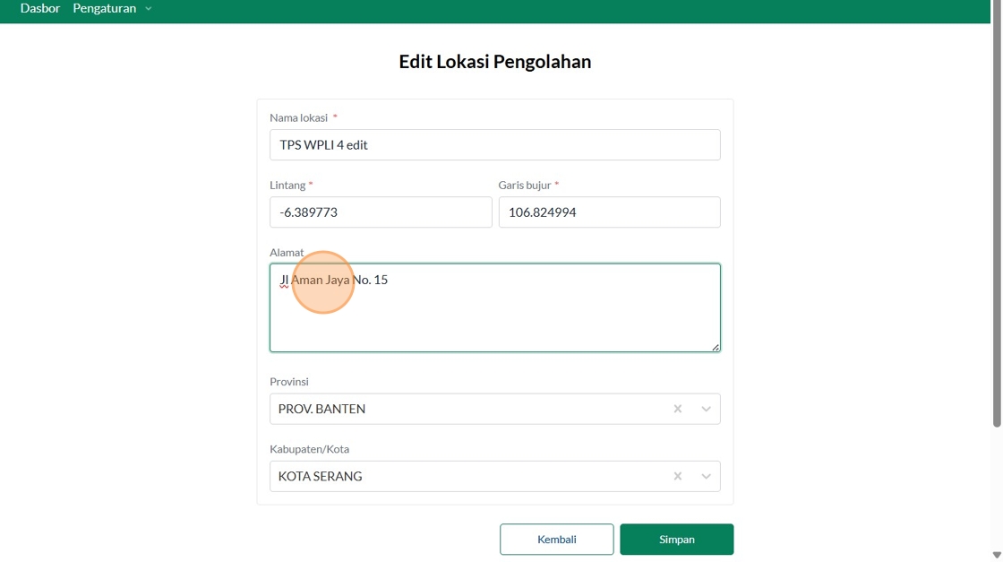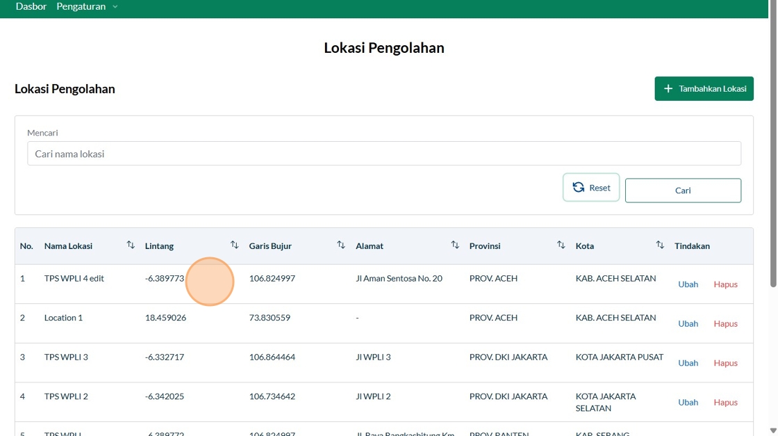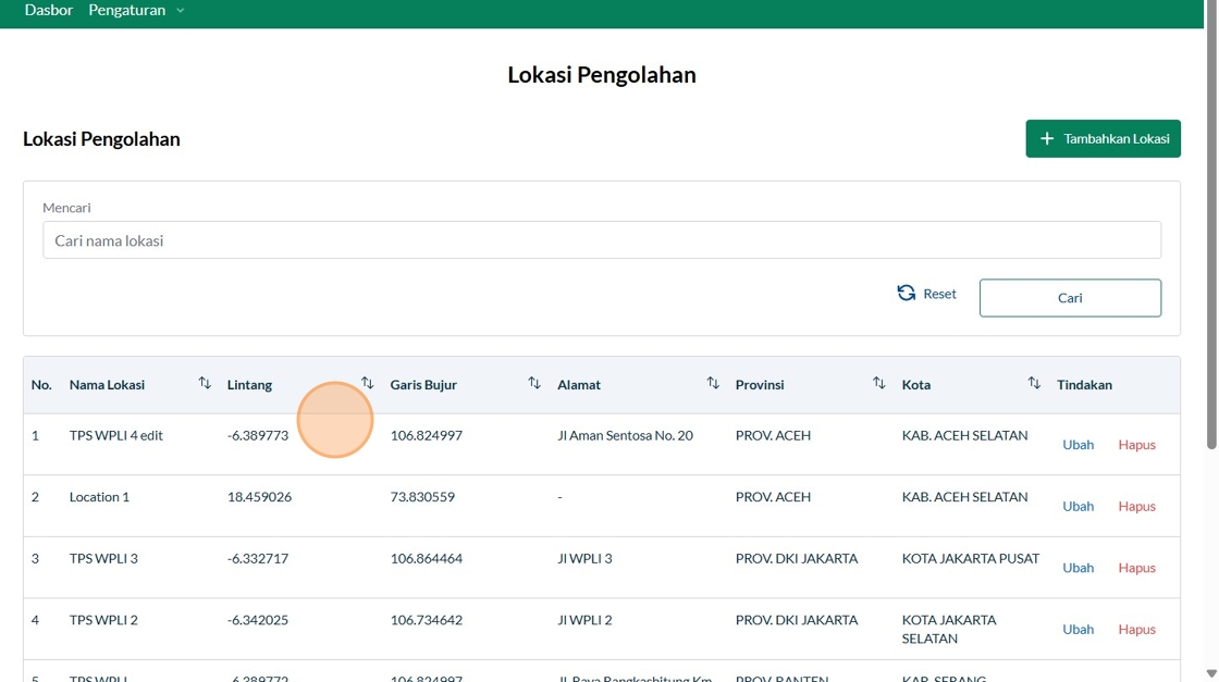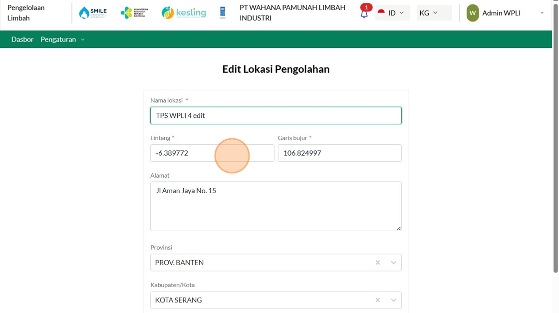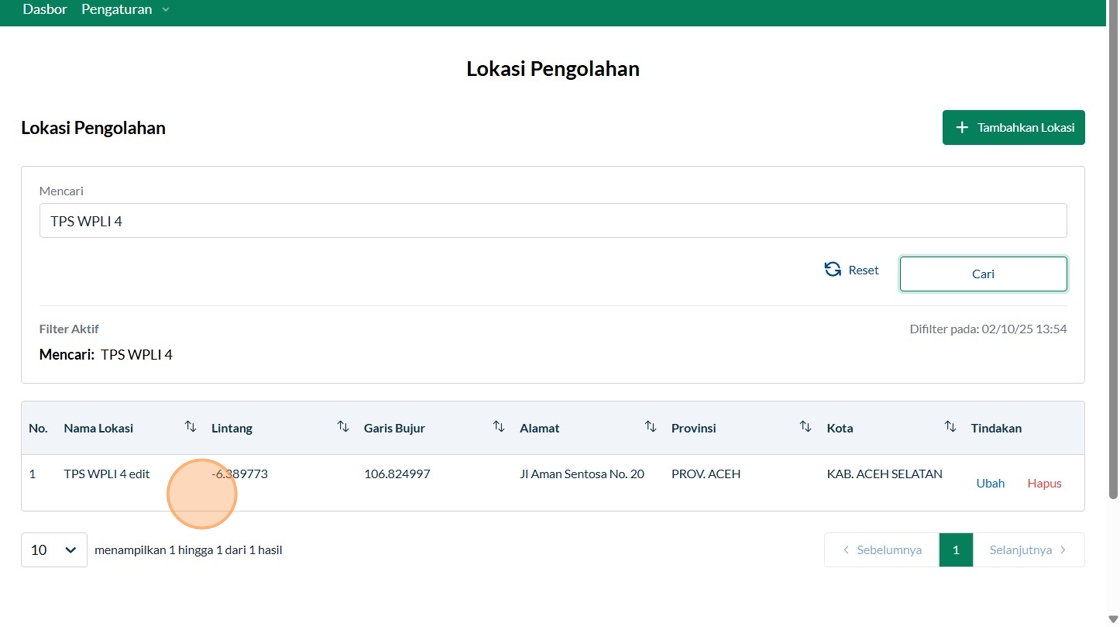 40. Click "Berhasil menghapus lokasi pengolahan"