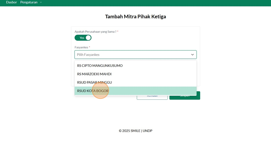 1. Navigate to https://staging-wms.smile-indonesia.id/id/treatment-location
