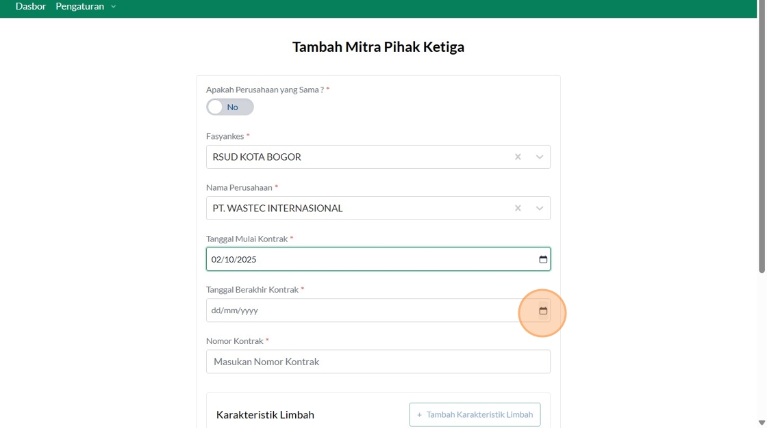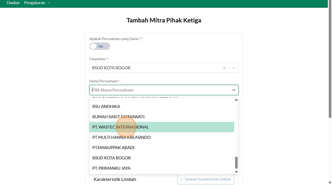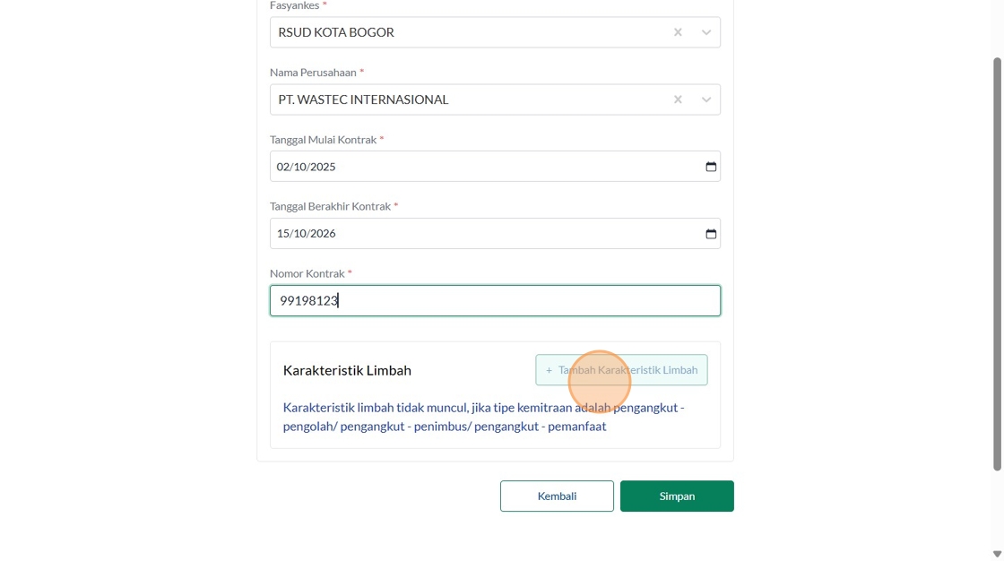 50. Click "+Tambah Karakteristik Limbah"