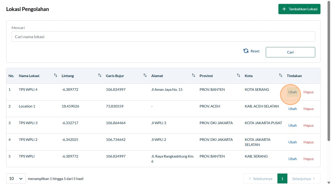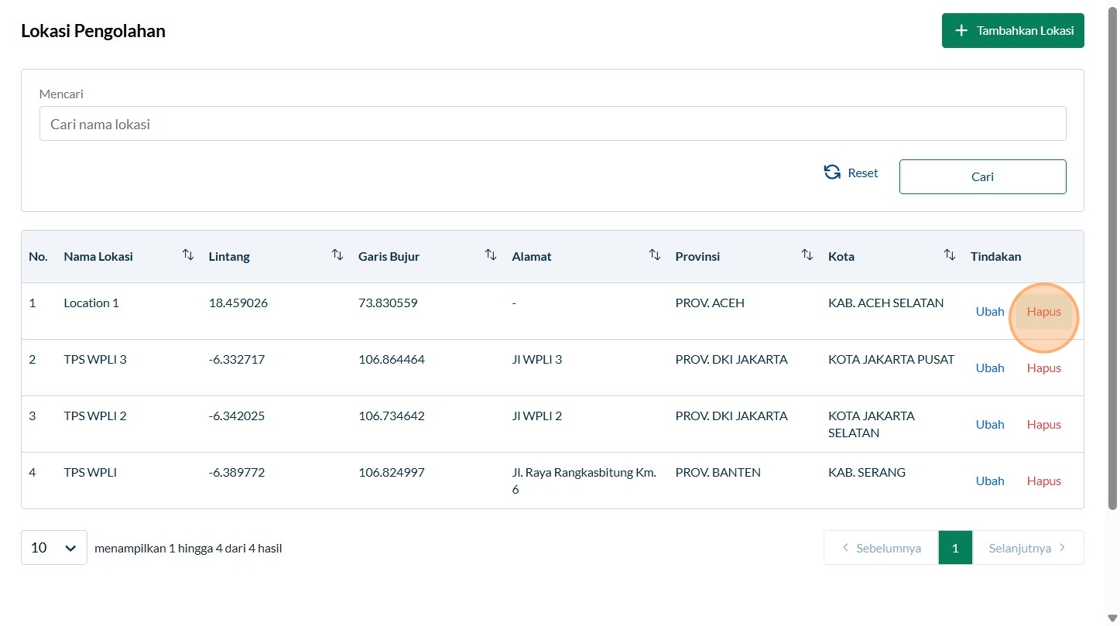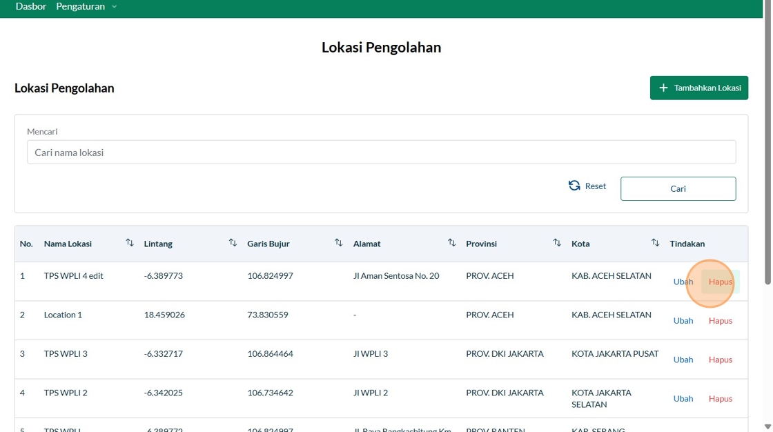 42. Click "Berhasil menghapus lokasi pengolahan"