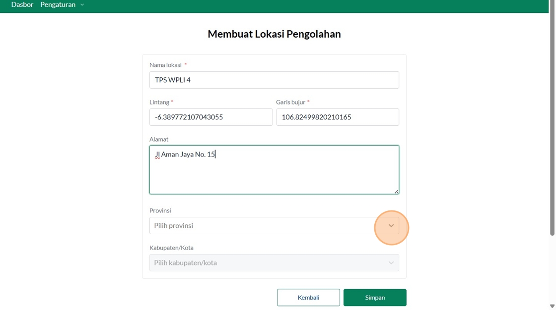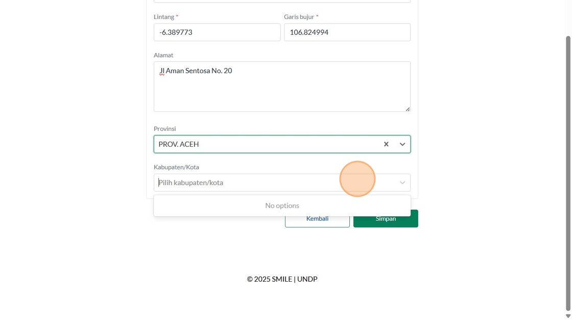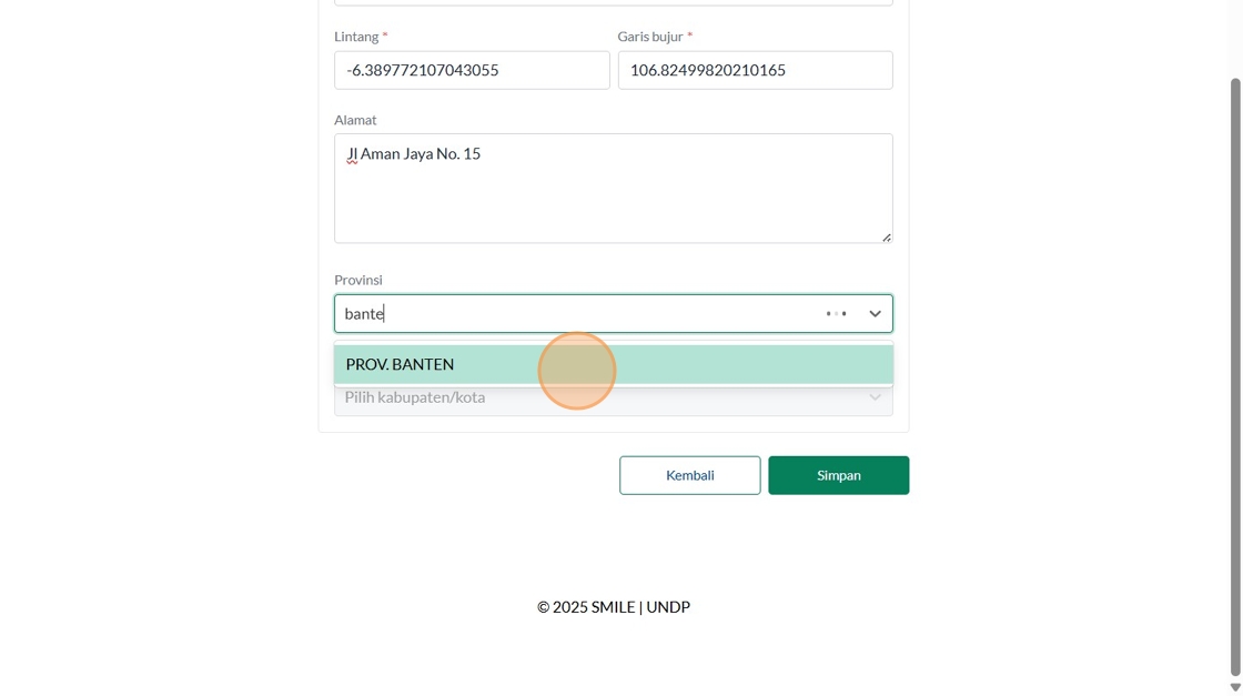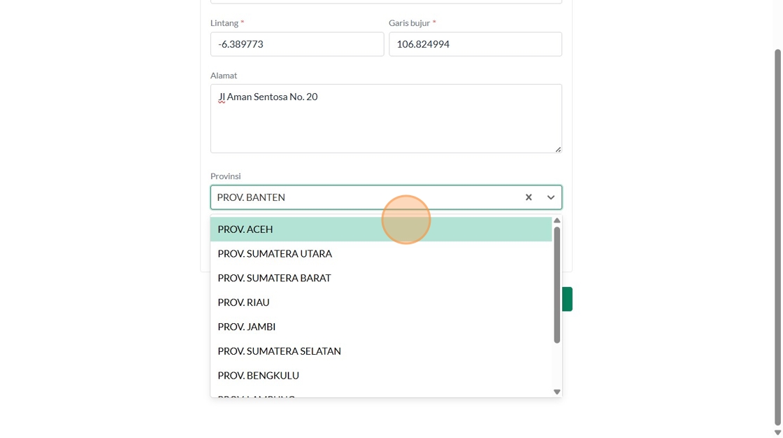 22. Click the "Masukkan Latitude" field.