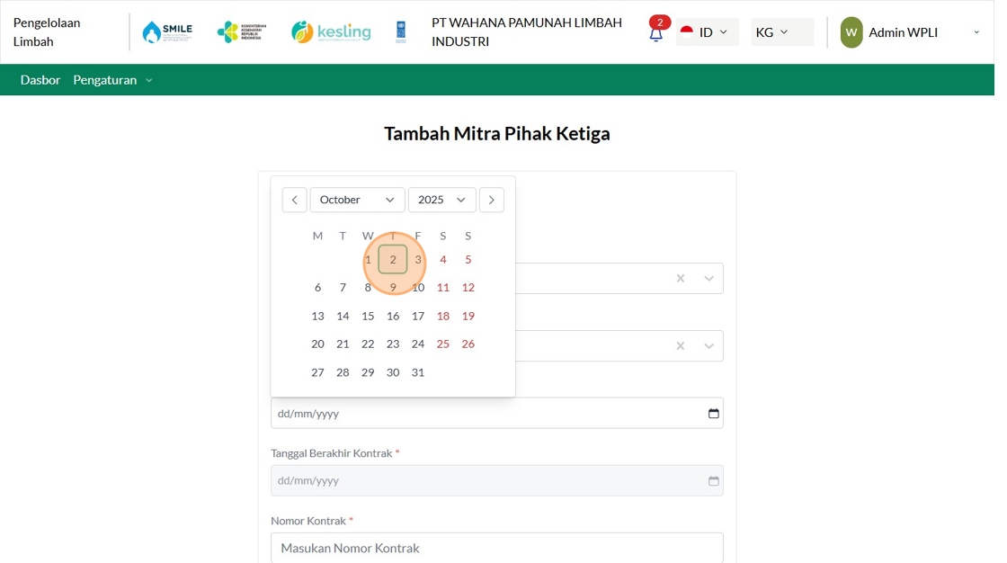45. Click "Mitra Pihak Ketiga"